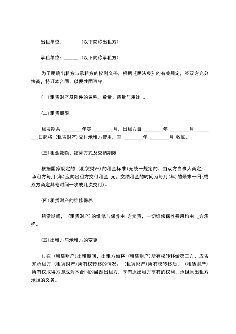 承租单位:______ (以下简称承租方)