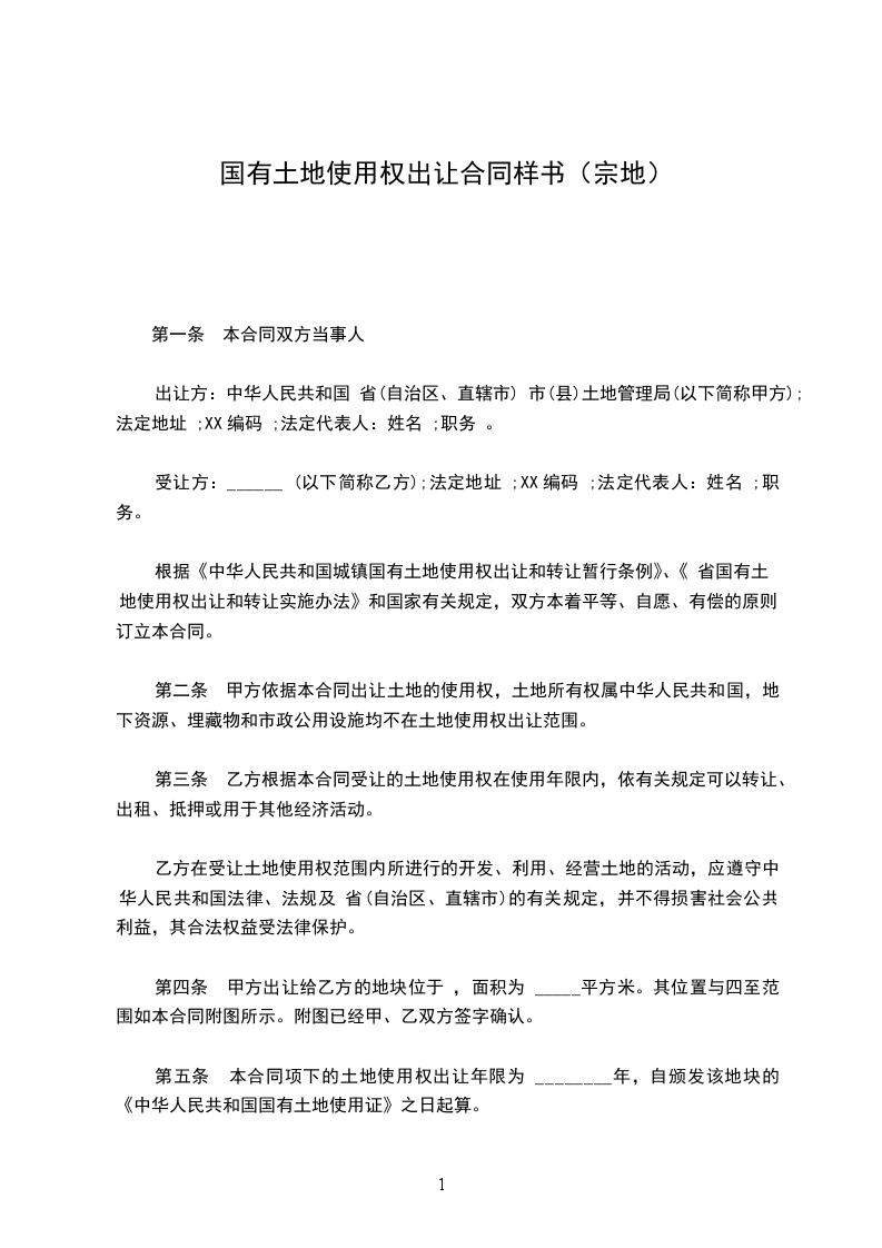 根据《中华人民共和国城镇国有土地使用权出让和转让暂行条例》、《 省国有土地使用权出让和转让实施办法》和国家有关规定,双方本着平等、自愿、有偿的原则,订立本合同。
