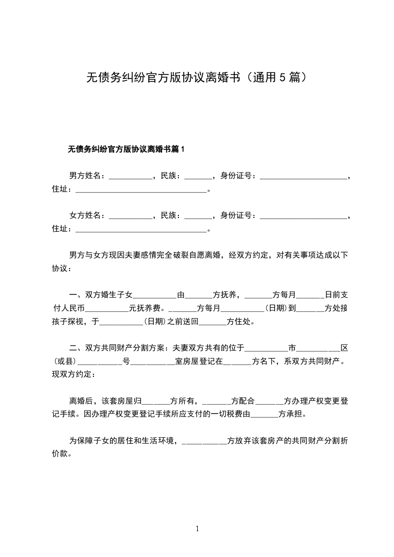 1、本协议一式三份,自婚姻登记机关颁发《离婚证》之日起生效,男、女双方各执一份,婚姻登记机关存档一份。