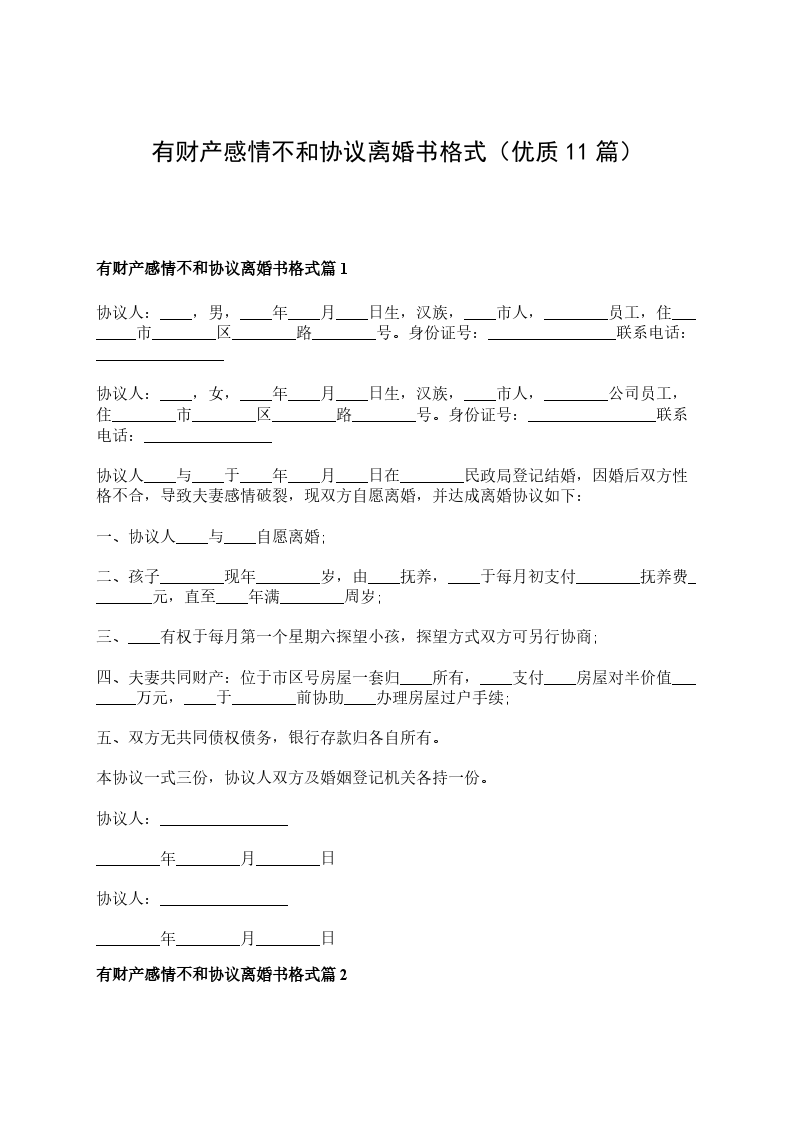 八、本协议一式三份,男、女双方各执一份,婚姻登记机关存档一份。