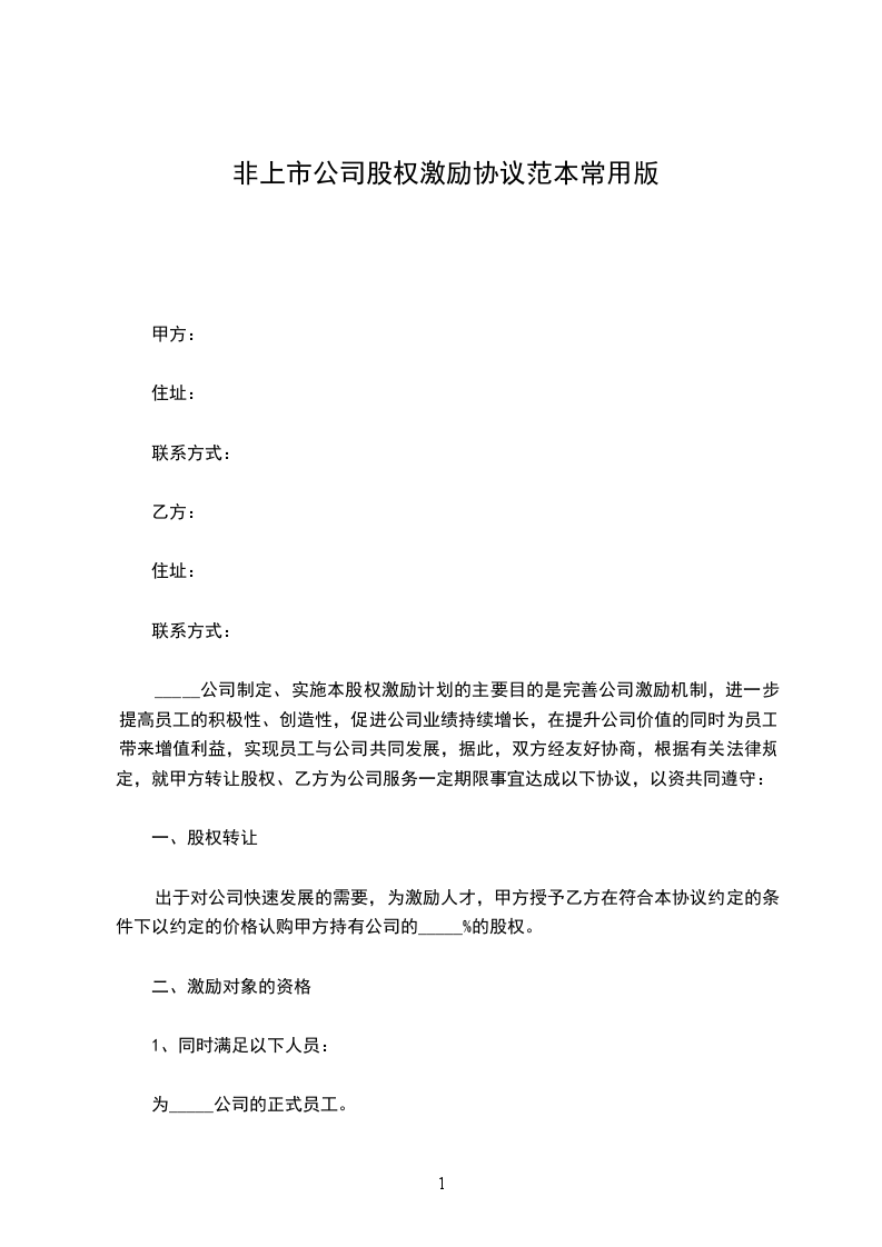 出于对公司快速发展的需要,为激励人才,甲方授予乙方在符合本协议约定的条件下以约定的价格认购甲方持有公司的_____%的股权。