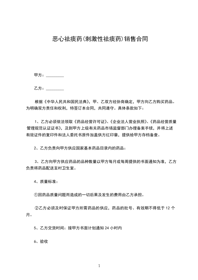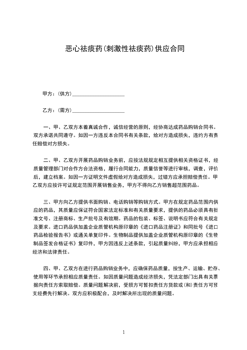 五、乙方收货后,在经营过程中发现所供药品质量有问题,应尽快通知甲方或向甲方查询,甲方应及时提出处理意见。