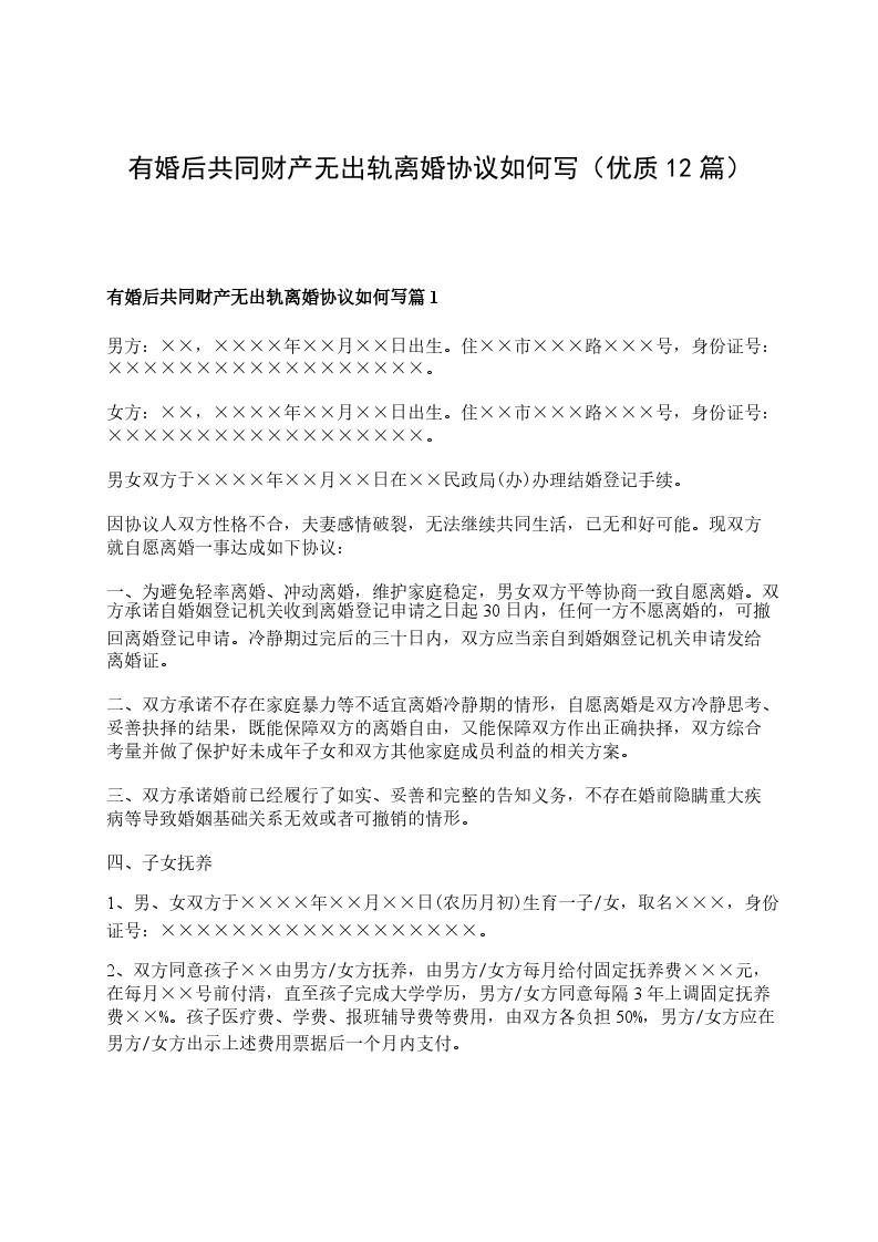 双方于20xx年xx月xx日在__________人民政府的民政部门登记结婚,婚后无子女,因双方性格不和,无法共同生活,自愿离婚,经双方协商一致,订立离婚协议如下: