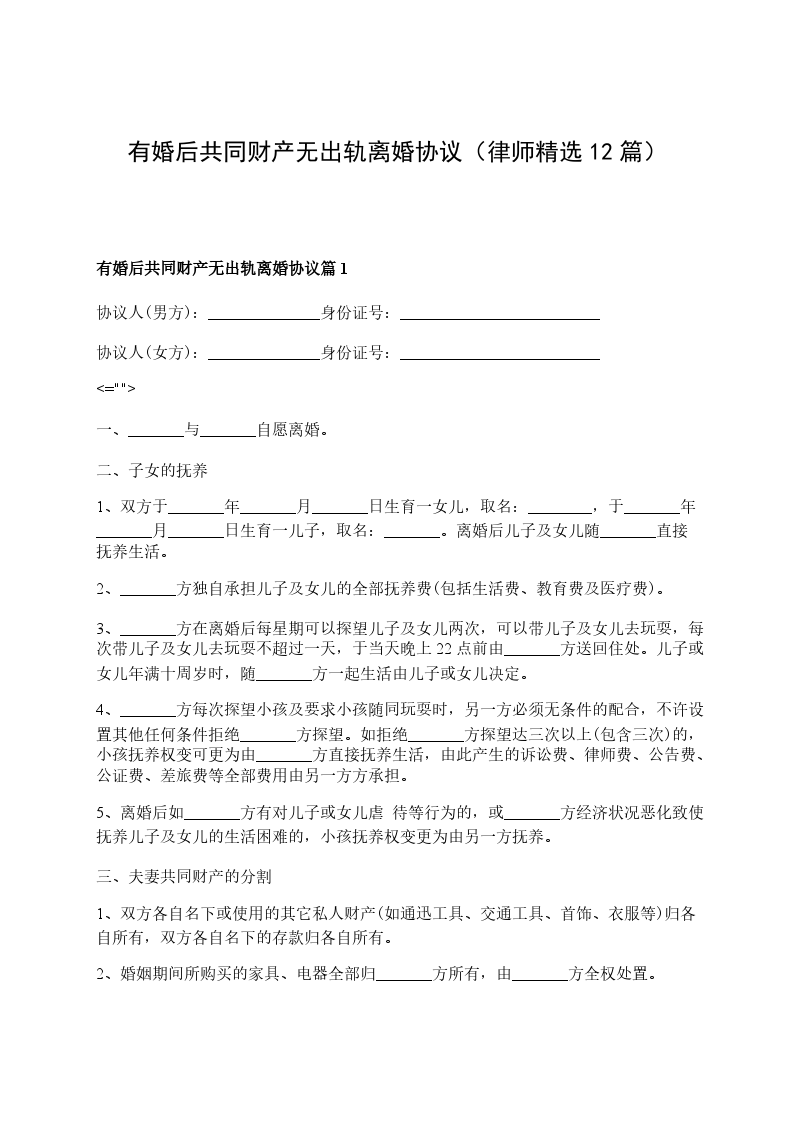 注:本协议一式______份,男女双方各______份,婚姻登记机关_____份。
