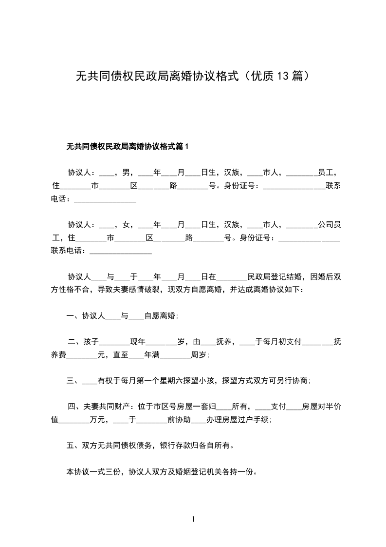(1)男女双方确认在婚姻关系存续期间无共同债务。