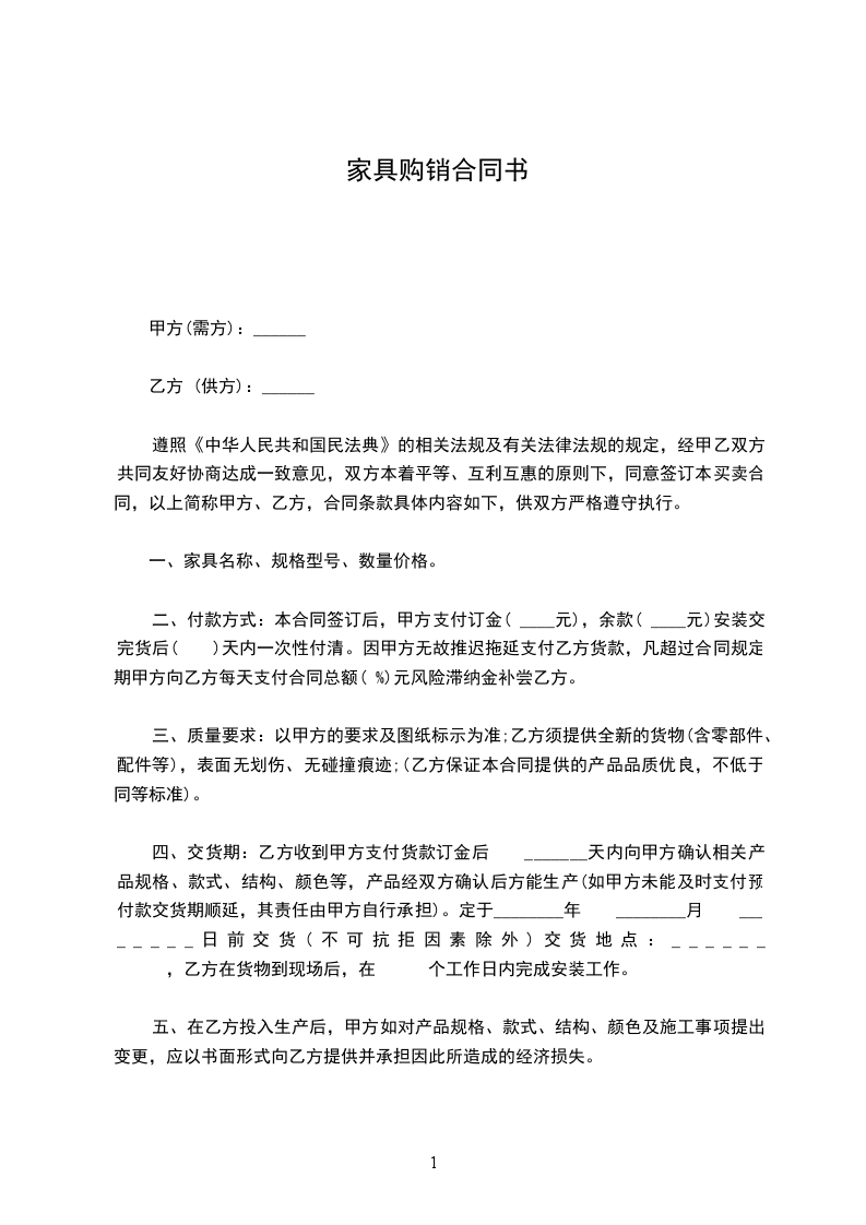 遵照《中华人民共和国民法典》的相关法规及有关法律法规的规定,经甲乙双方共同友好协商达成一致意见,双方本着平等、互利互惠的原则下,同意签订本买卖合同,以上简称甲方、乙方,合同条款具体内容如下,供双方严格遵守执行。
