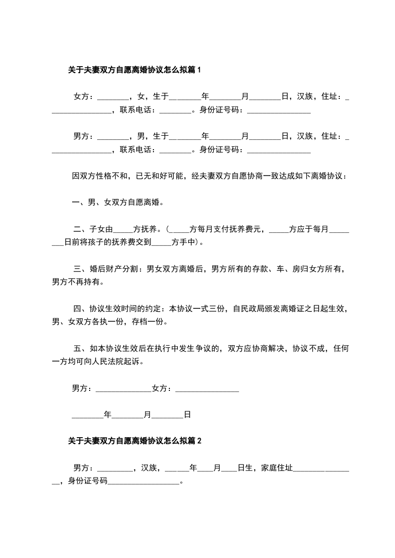 一、男女双方自愿离婚