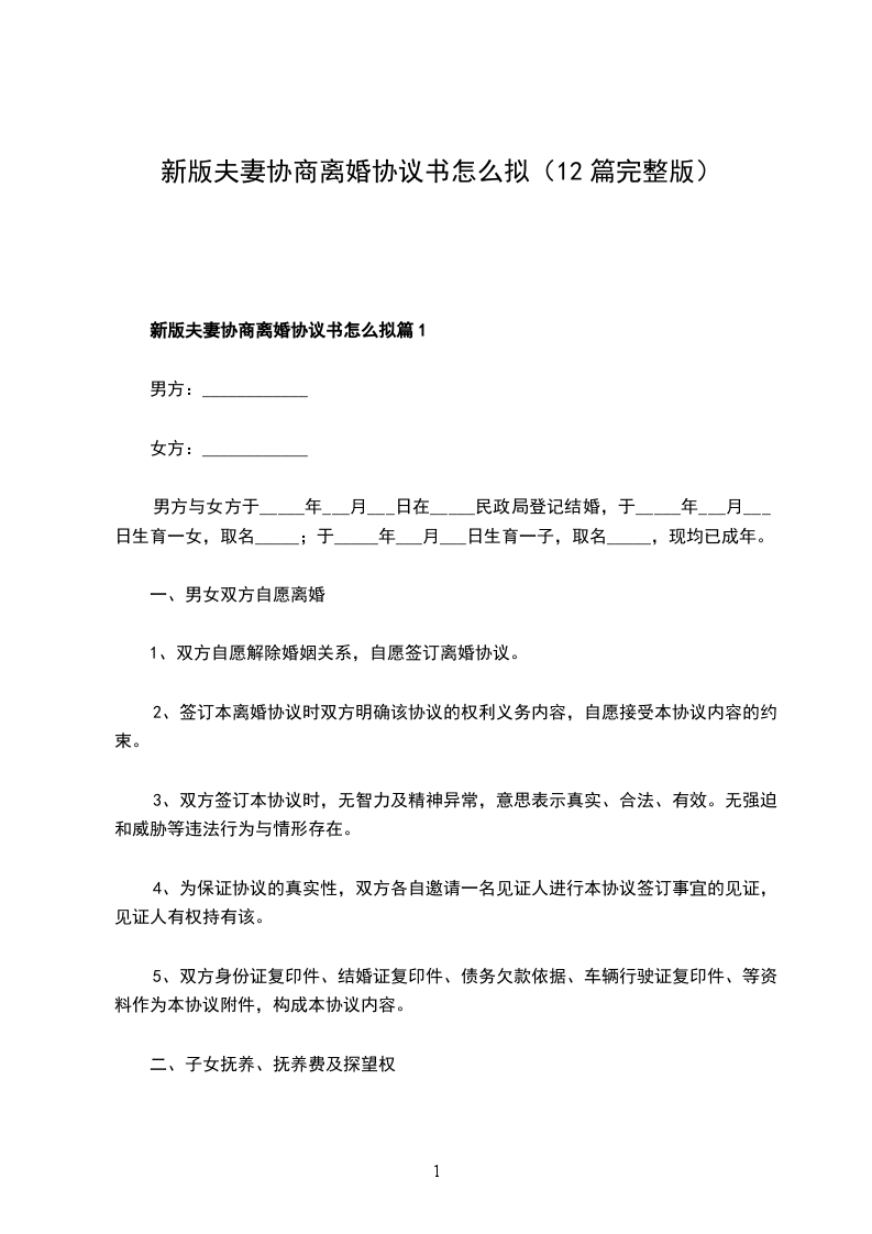 新版夫妻协商离婚协议书怎么拟篇1