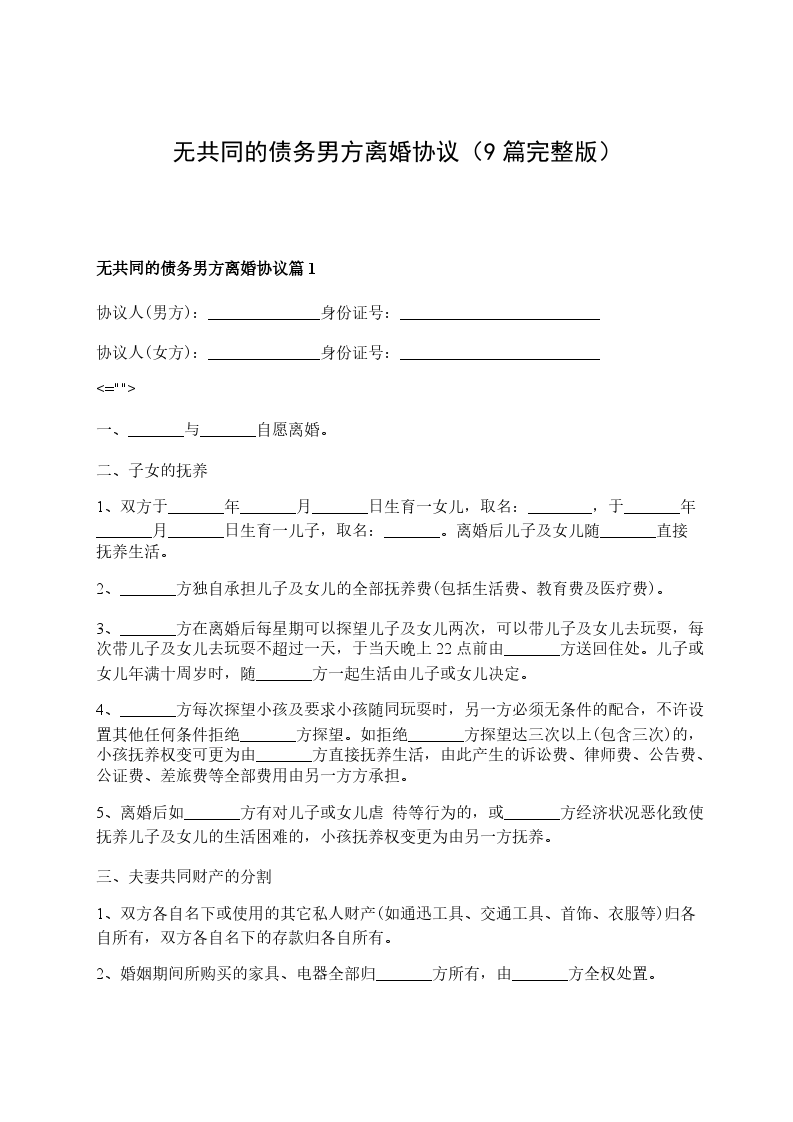 无共同的债务男方离婚协议篇9