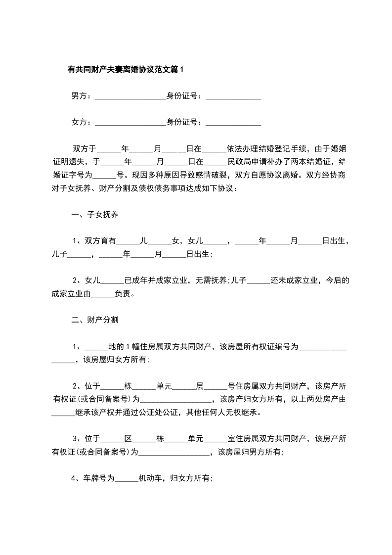 1、______地的1幢住房属双方共同财产,该房屋所有权证编号为__________________,该房屋归女方所有;