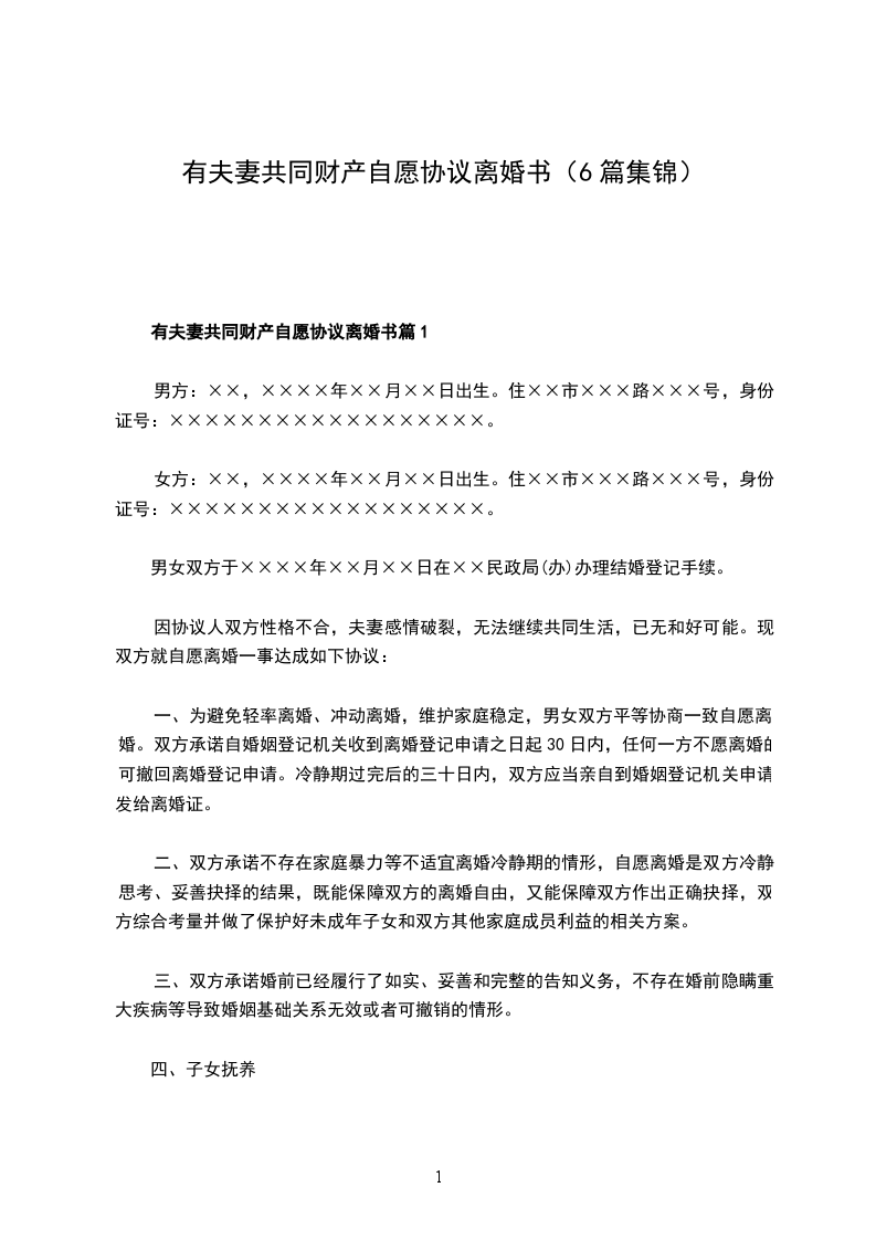 有夫妻共同财产自愿协议离婚书篇5