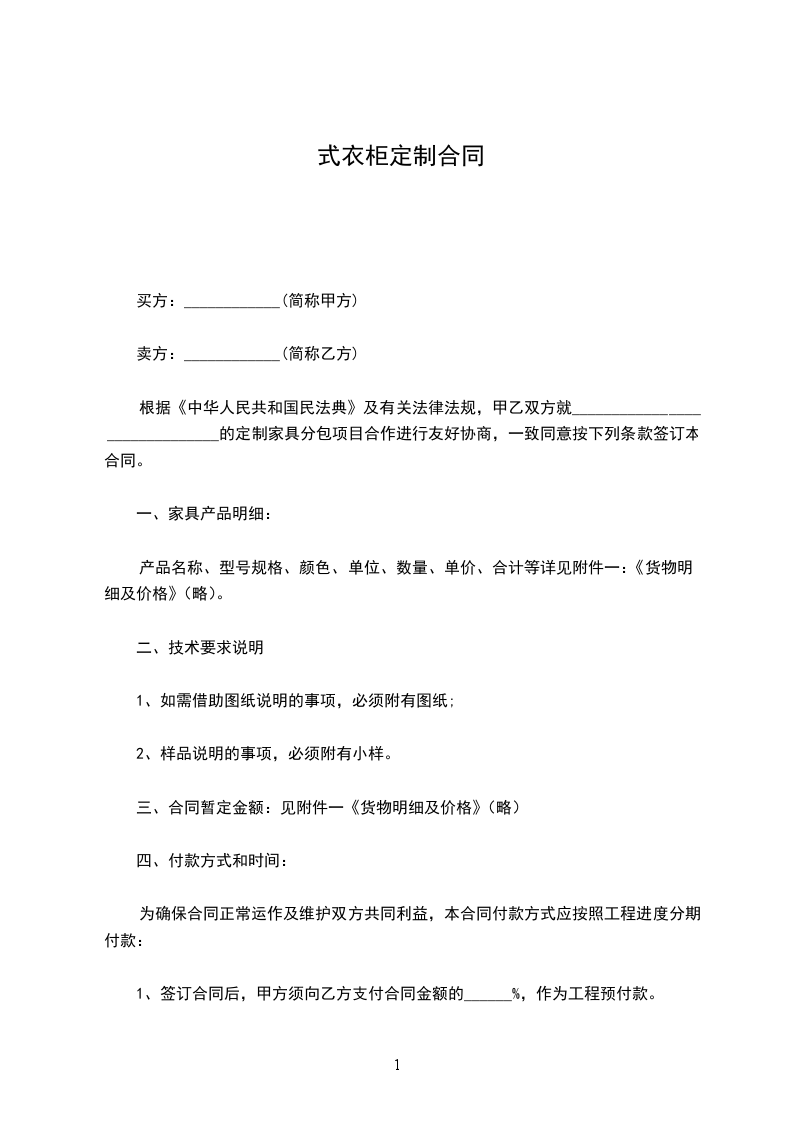 经乙方设计师测量、设计,由甲方确认的乙方衣柜类产品及附件的生产加工、制造和供
