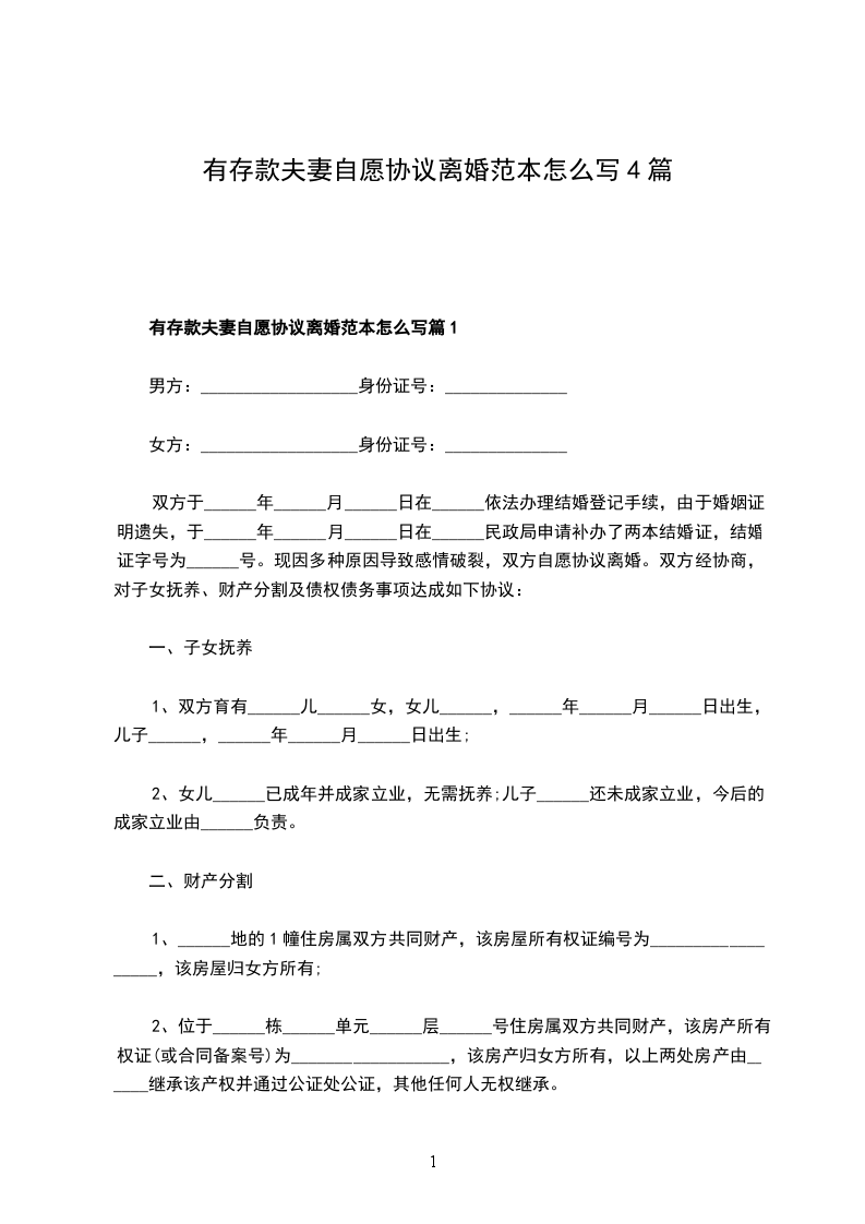 有存款夫妻自愿协议离婚范本怎么写篇1