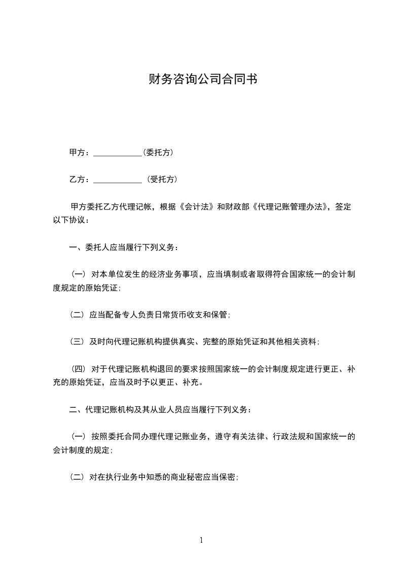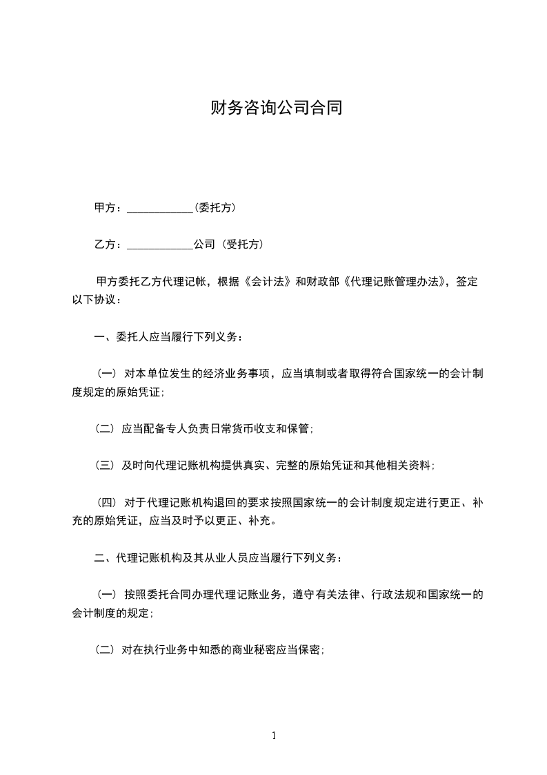 (一) 按照委托合同办理代理记账业务,遵守有关法律、行政法规和国家统一的会计制度的规定;