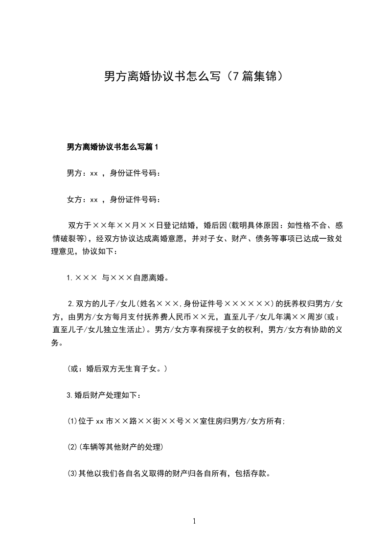 7.本协议一式三份,男女双方各持一份,婚姻登记机关存档一份。