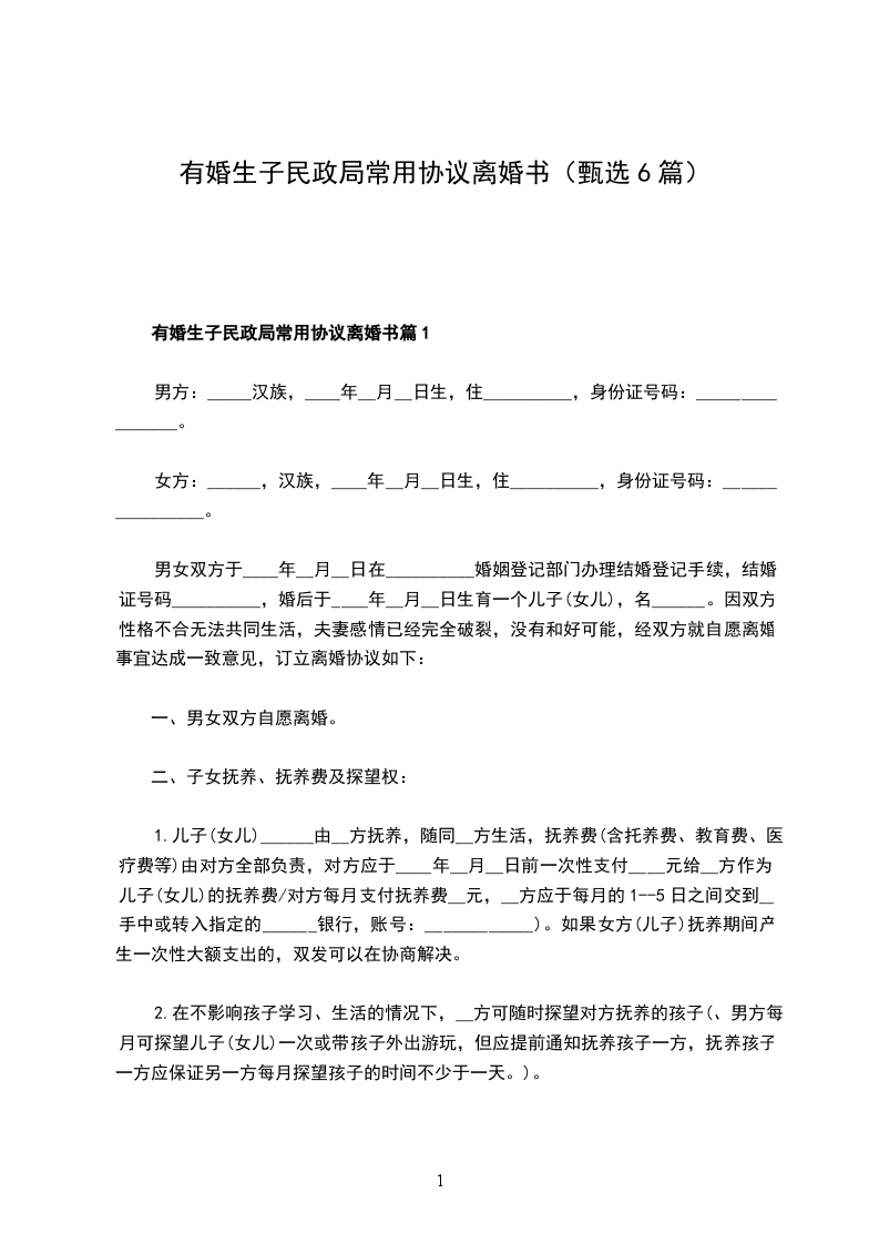 有婚生子民政局常用协议离婚书篇6