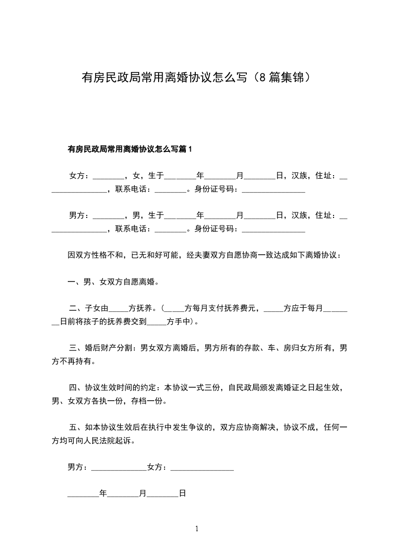 2、本协议一式三份,男女双方各执一份,婚姻登记机关存档一份。