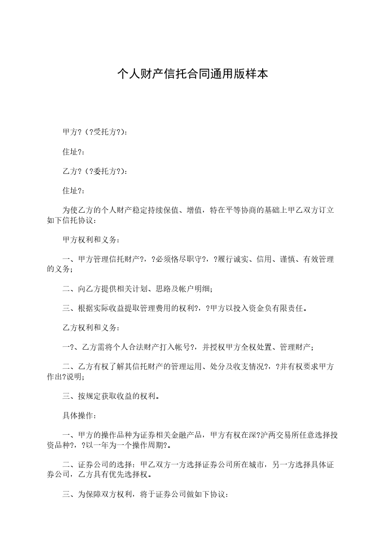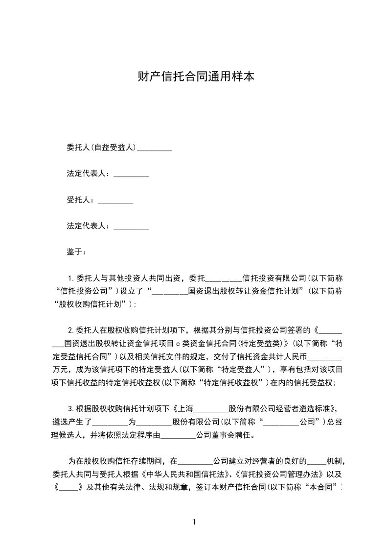 甲方向乙方办理财产信托,除确认财托字第 号"财产信托基本协议"的各项条款外,有关财产信托的具体事项,补充订立以下条款:
