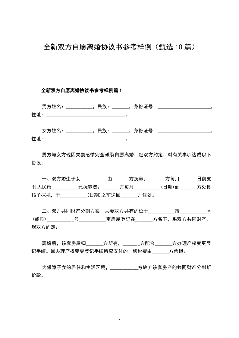 全新双方自愿离婚协议书参考样例篇10