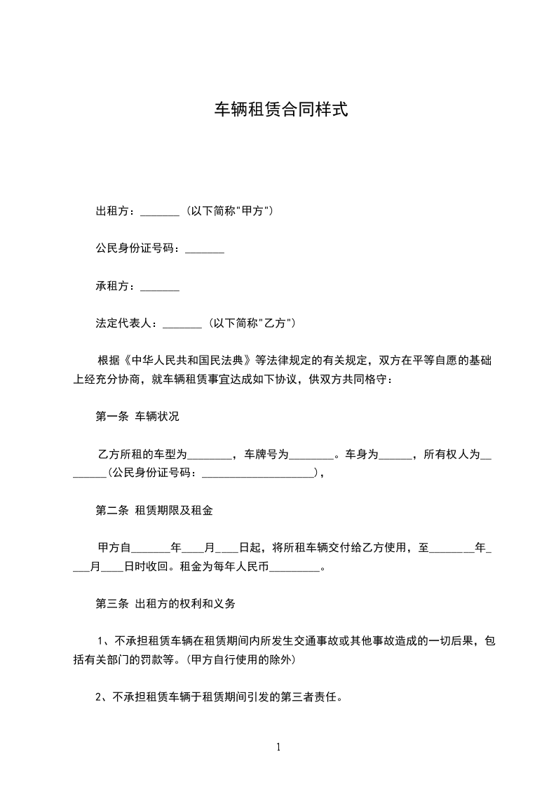 根据《中华人民共和国民法典》等法律规定的有关规定,双方在平等自愿的基础上经充分协商,就车辆租赁事宜达成如下协议,供双方共同格守: