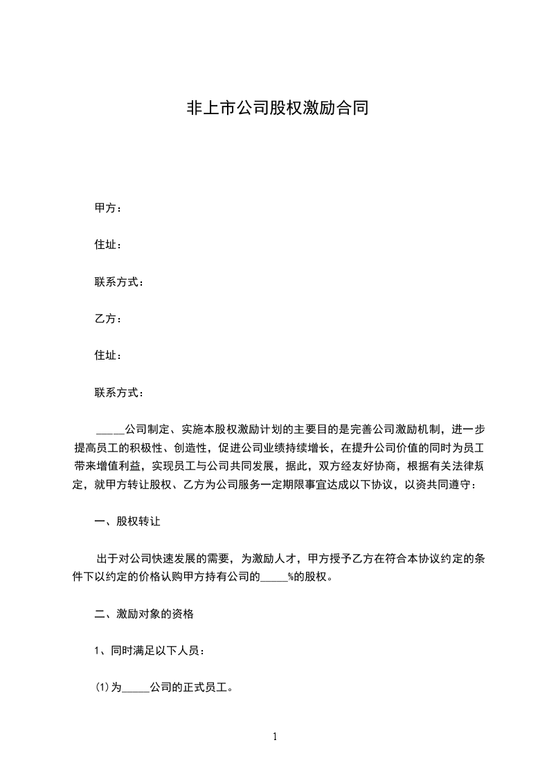 出于对公司快速发展的需要,为激励人才,甲方授予乙方在符合本协议约定的条件下以约定的价格认购甲方持有公司的_____%的股权。