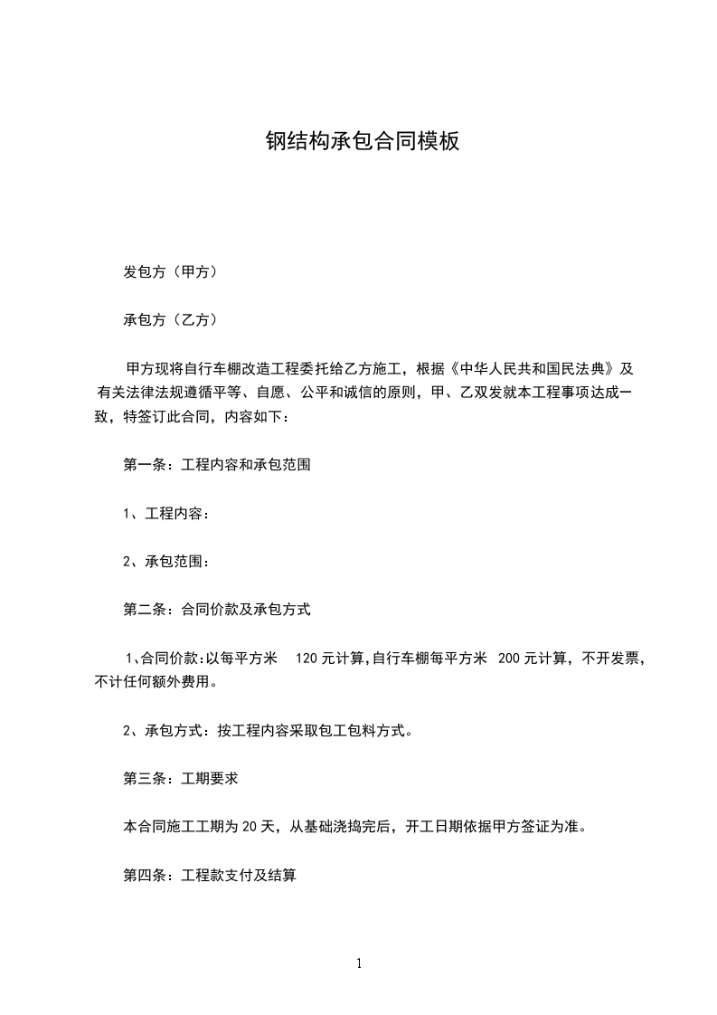 1、合同价款:以每平方米120元计算,自行车棚每平方米200元计算,不开发票,不计任何额外费用。