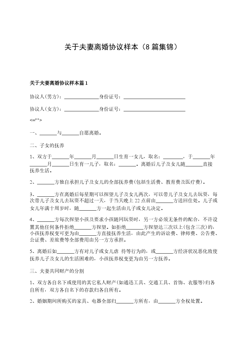 八、本协议一式三份,男、女双方各执一份,婚姻登记机关存档一份。