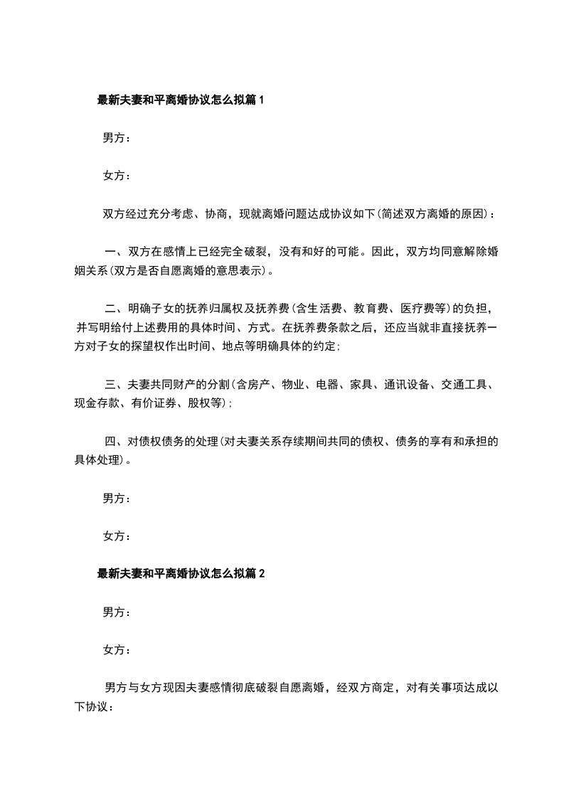 最新夫妻和平离婚协议格式篇2