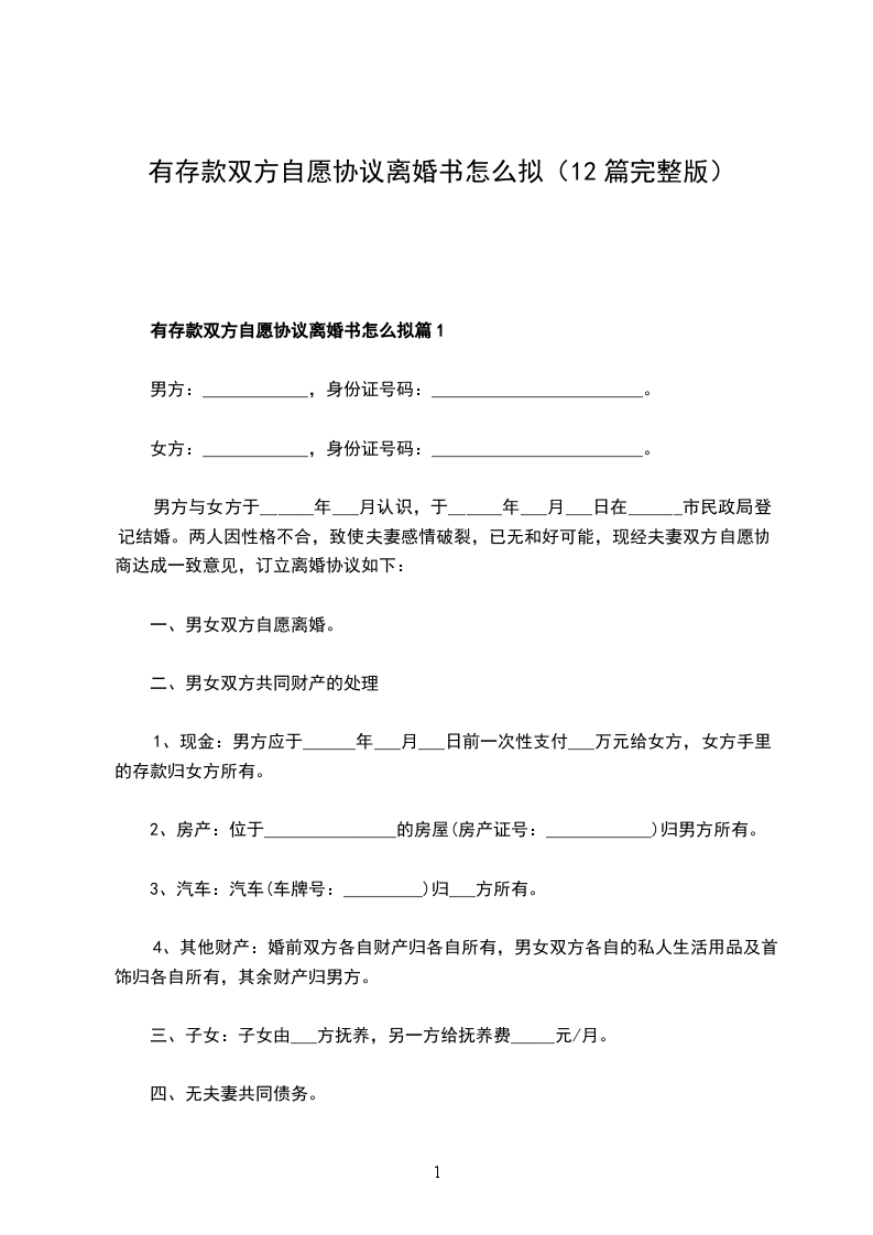 有存款双方自愿离婚协议书怎么拟篇1