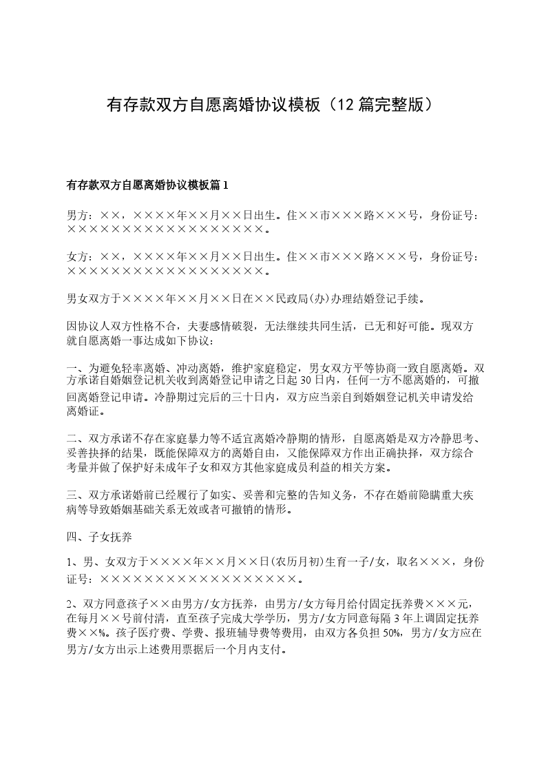 有存款双方自愿离婚协议书怎么拟篇5