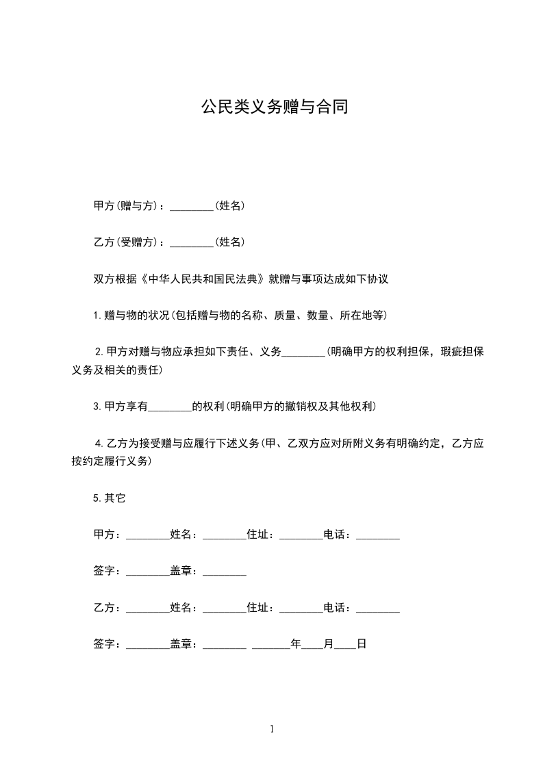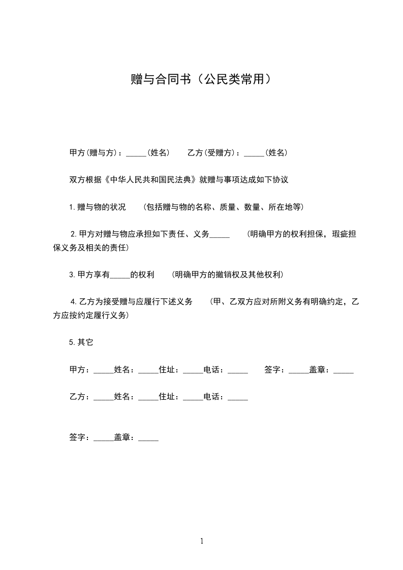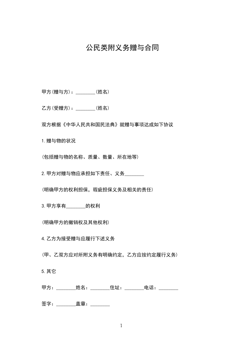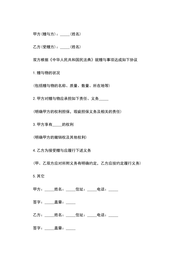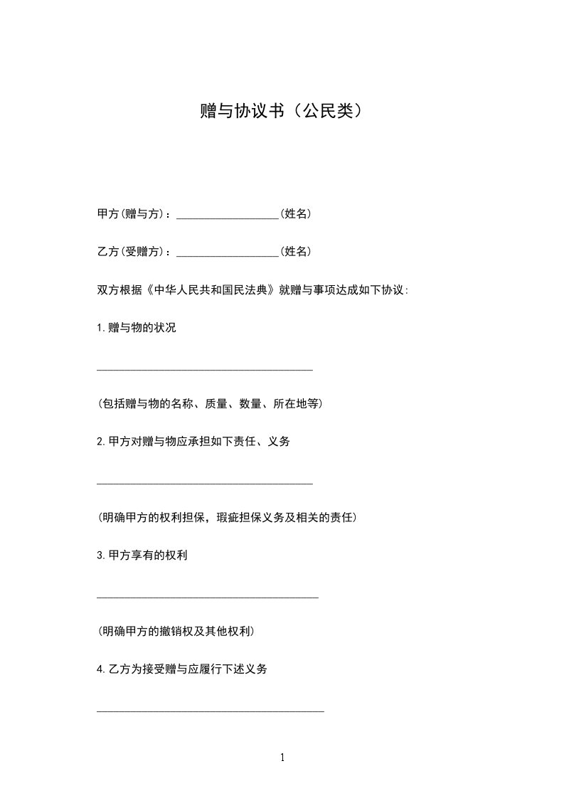 1.甲方将 赠与乙方