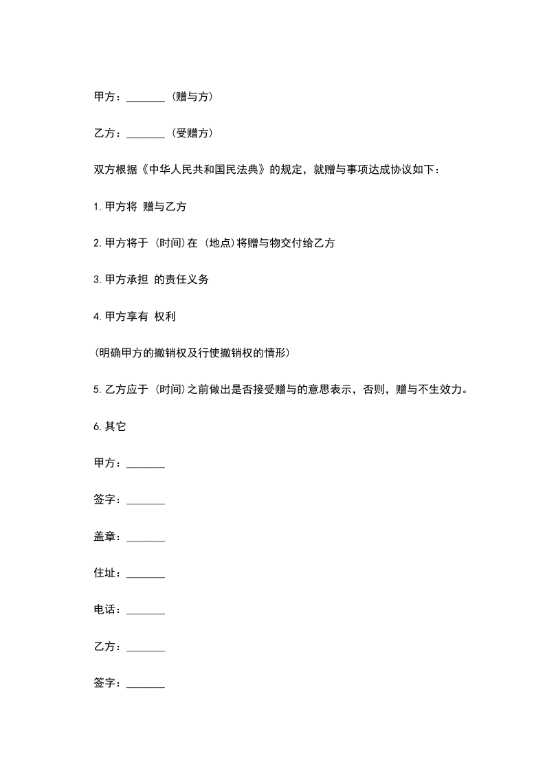 甲方:_______ (赠与方)