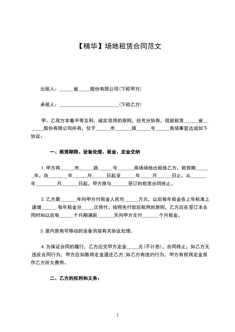 1.甲方将______市______路______号_______商场场地出租给乙方,租赁期______年,自________年______月______日起至______年_____月______日止。从_______年_________月_______日起,甲方原与_______签订的租赁合同终止。