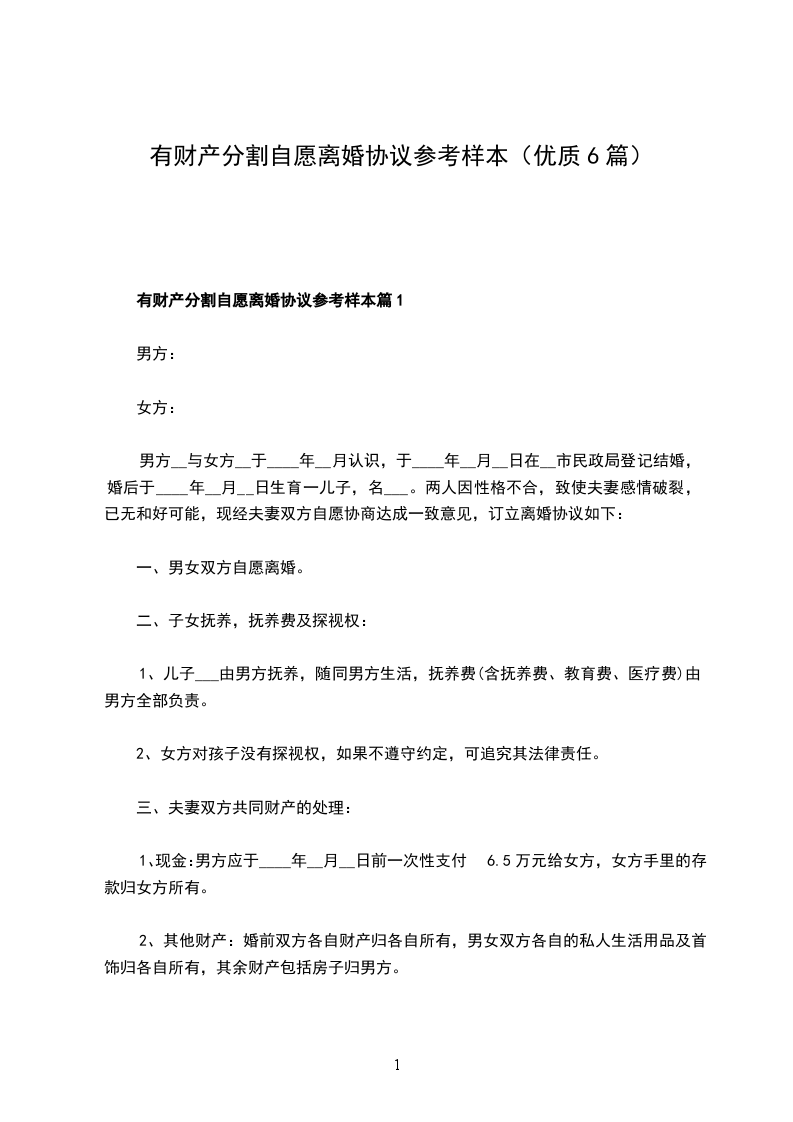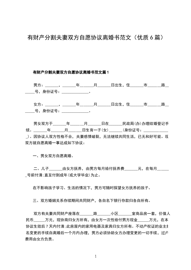 有财产分割夫妻自愿协议离婚范本样本篇6