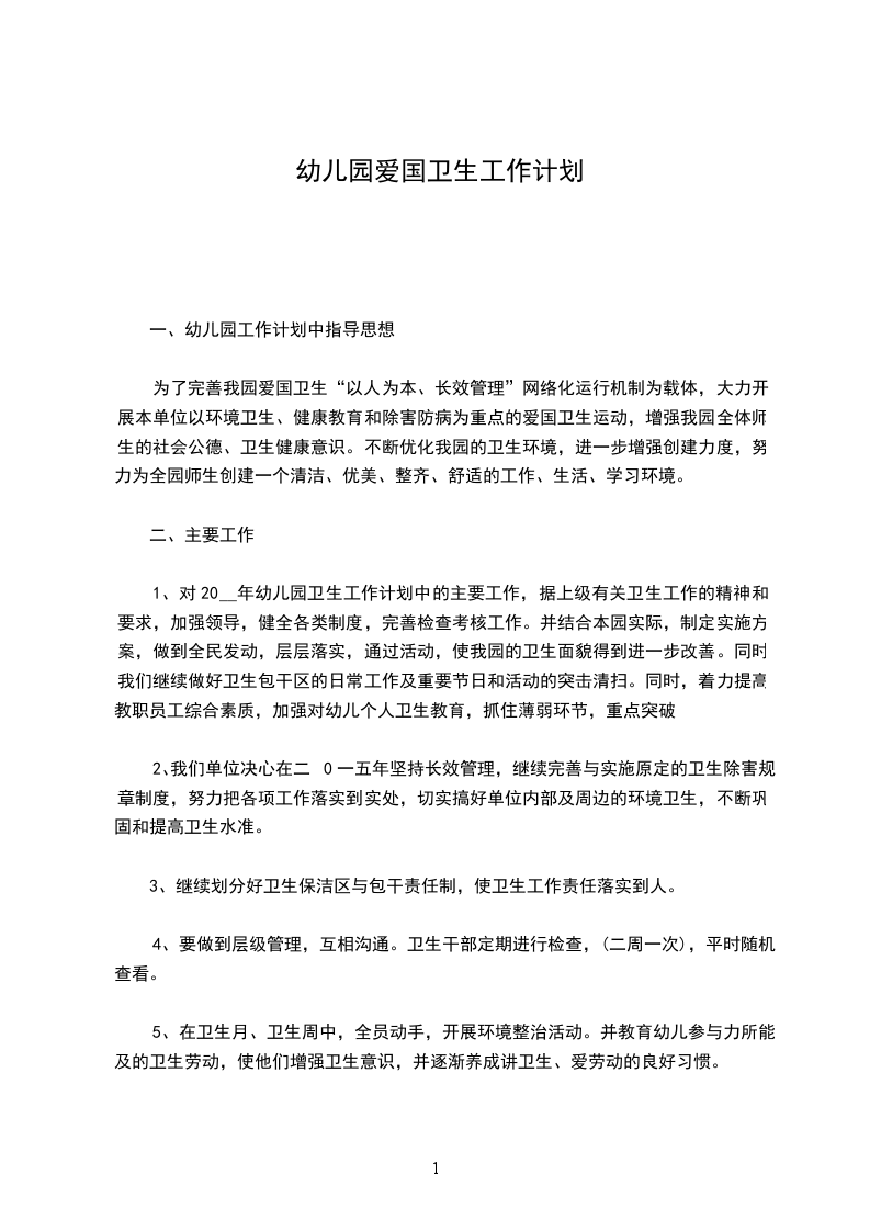 1、对20__年幼儿园卫生工作计划中的主要工作,据上级有关卫生工作的精神和要求,加强领导,健全各类制度,完善检查考核工作。并结合本园实际,制定实施方案,做到全民发动,层层落实,通过活动,使我园的卫生面貌得到进一步改善。同时我们继续做好卫生包干区的日常工作及重要节日和活动的突击清扫。同时,着力提高教职员工综合素质,加强对幼儿个人卫生教育,抓住薄弱环节,重点突破