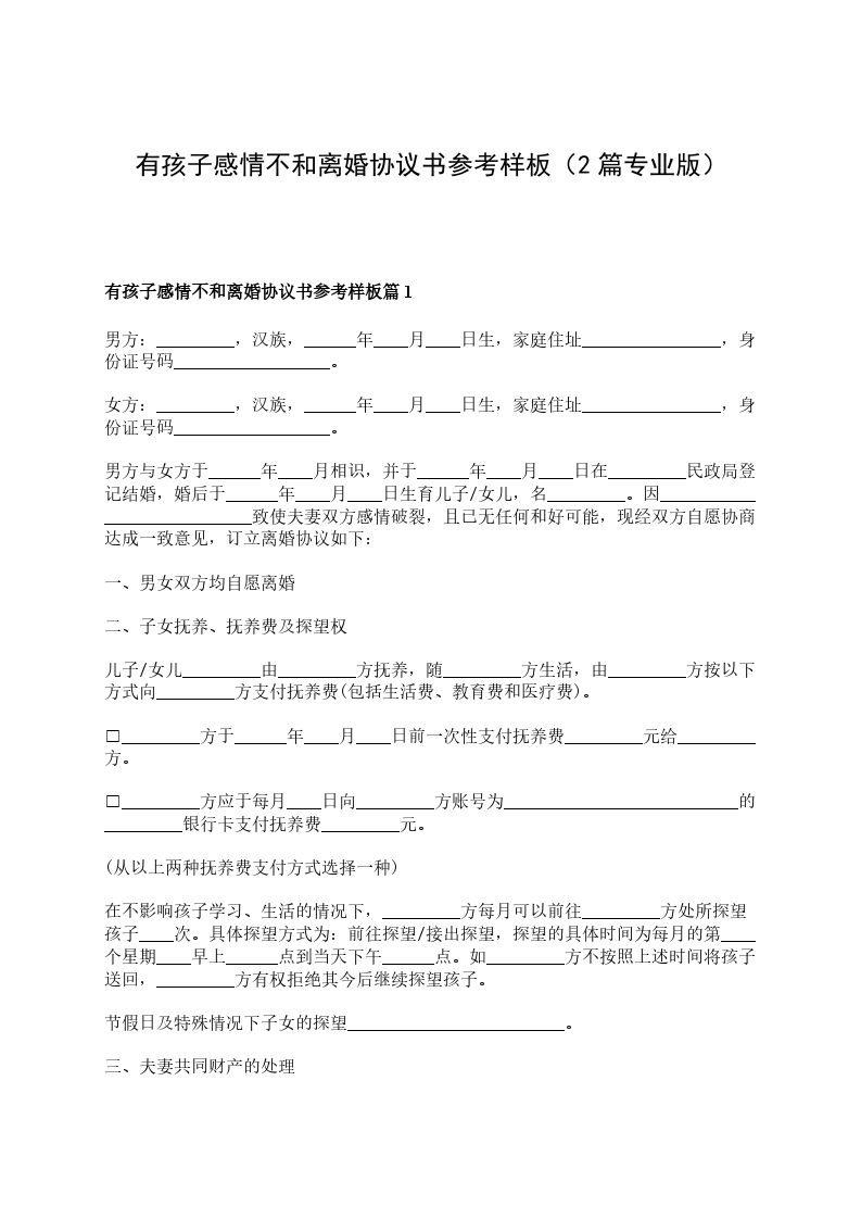 有孩子感情不和离婚协议书参考样板篇2