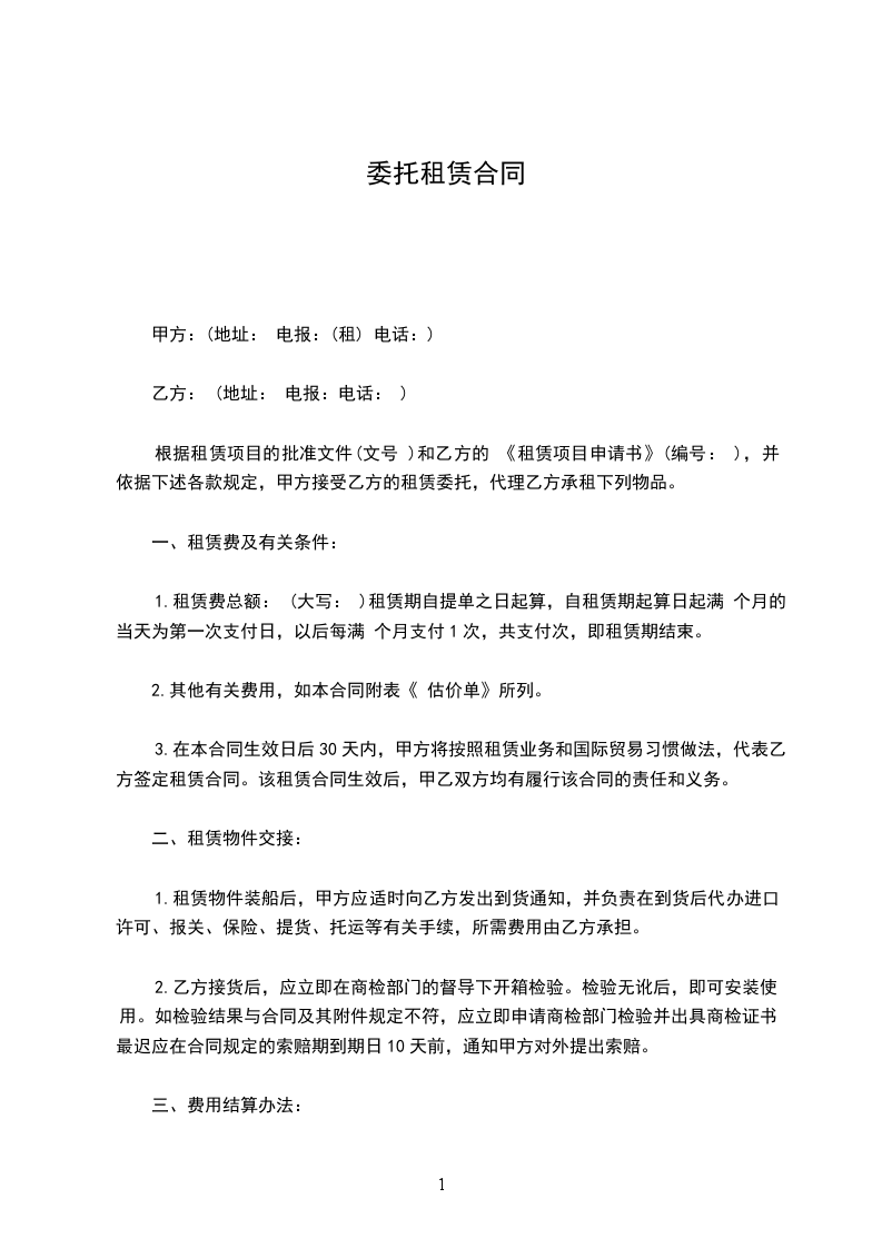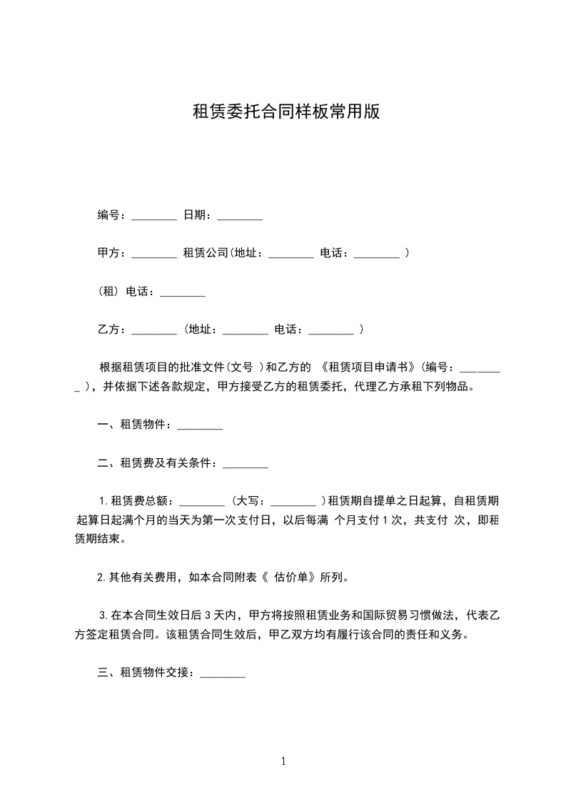 根据租赁项目的批准文件(文号 )和乙方的 《租赁项目申请书》(编号:________ ),并依据下述各款规定,甲方接受乙方的租赁委托,代理乙方承租下列物品。
