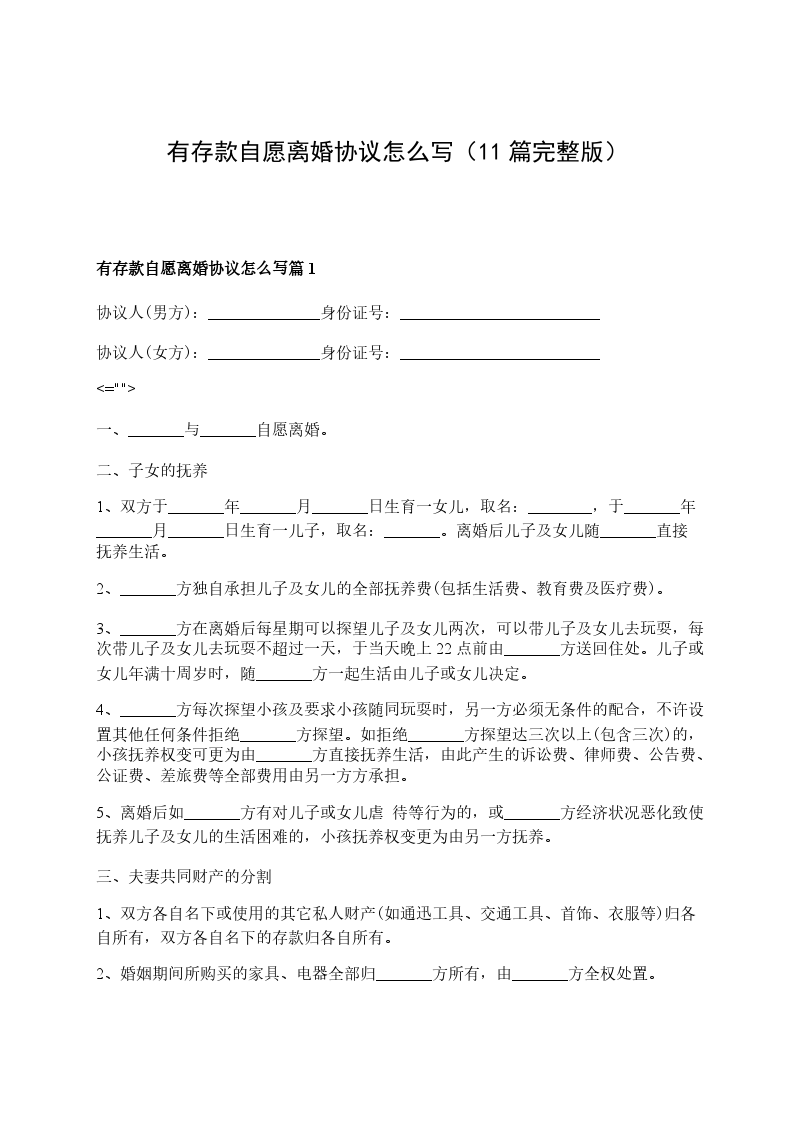 有存款自愿离婚协议怎么写篇9