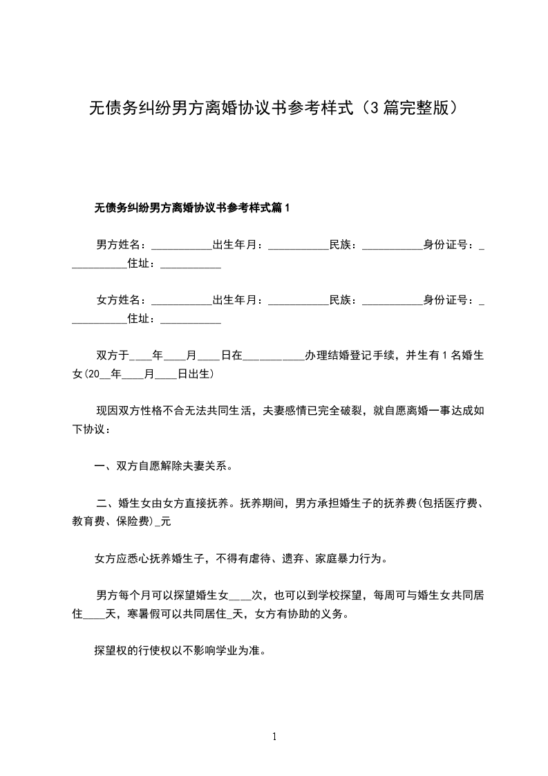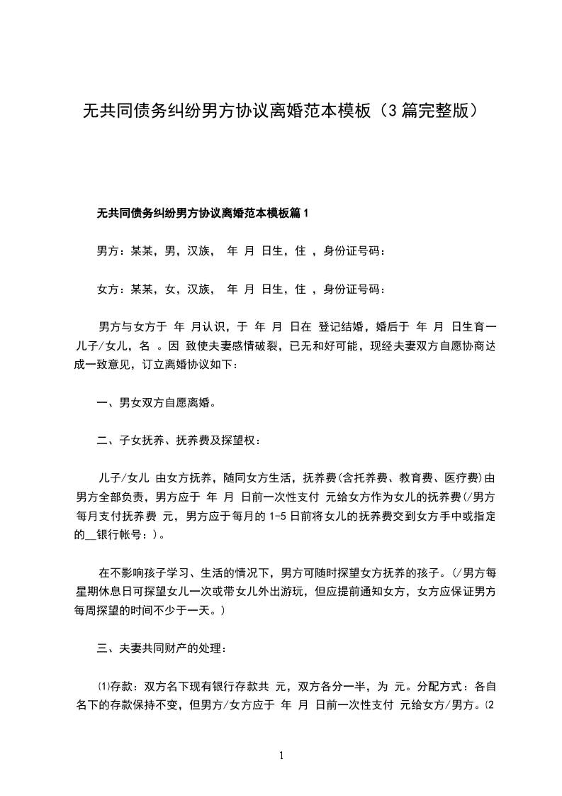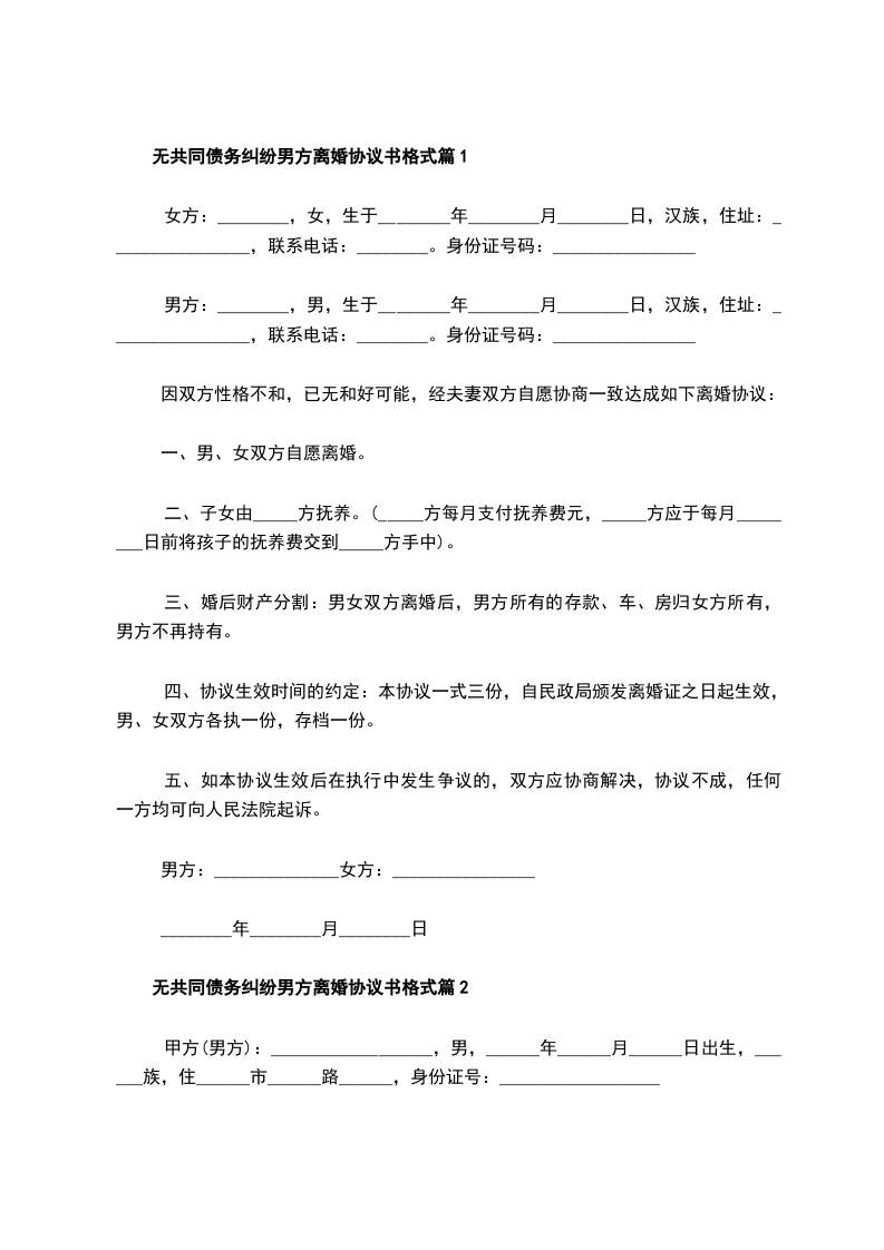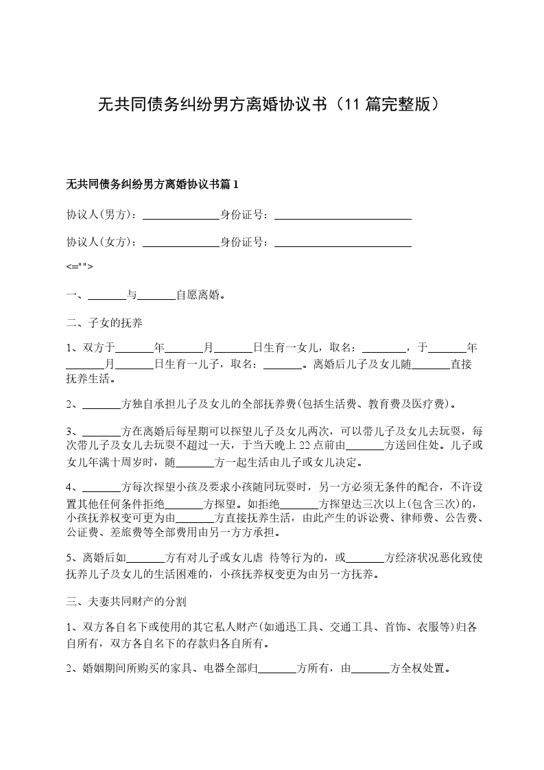 1、甲乙双方确认在婚姻关系存续期间没有发生共同债务。