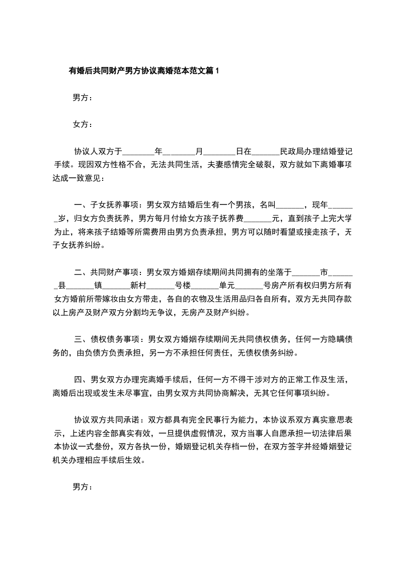 本协议以上载明的财产已经包含了全部夫妻婚姻关系存续期间的财产,并对财产权属予以确认。