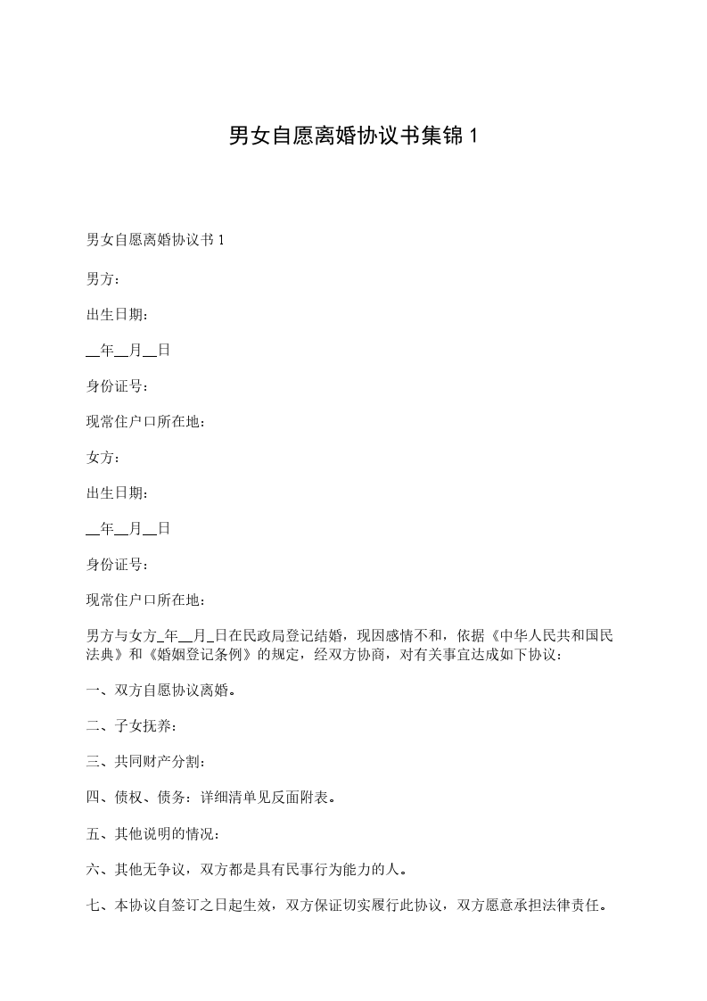 7.本协议一式三份,男女双方各持一份,婚姻登记机关存档一份。