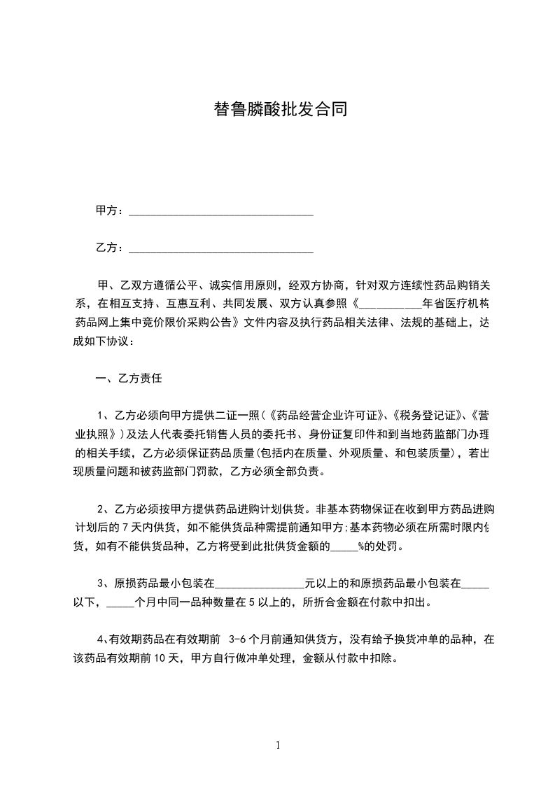 替鲁膦酸批发合同