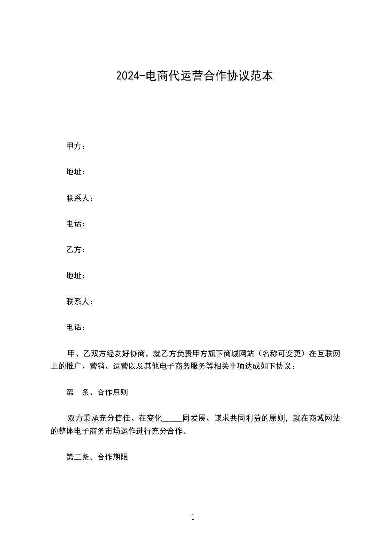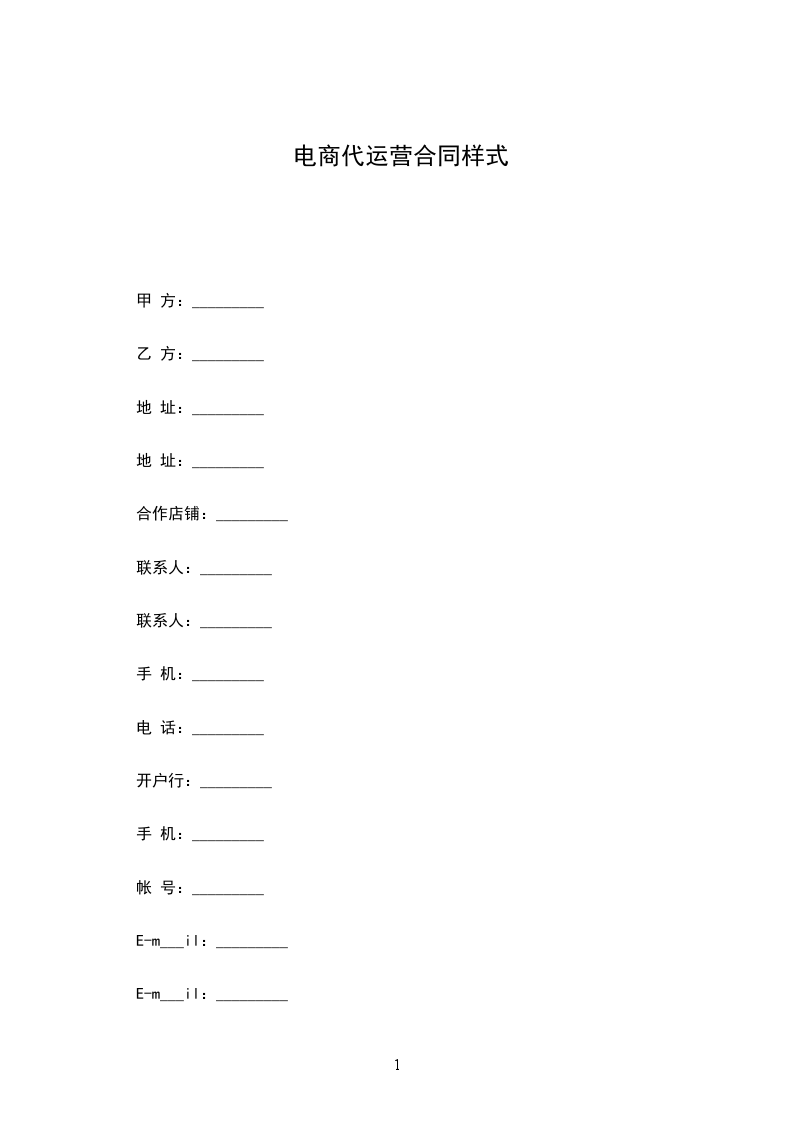 1、由于乙方为第三方代运营团队,为甲方提供商城运营服务,在乙方运营顾问期内,甲方需每月支付_____元作为技术服务费,并从每月的销售额中提取_________% 的佣金作为乙方的服务报酬。甲方需提前支付_____元 作为店铺一年的保证金费用。待服务结束后乙方应退回元保证金给甲方。