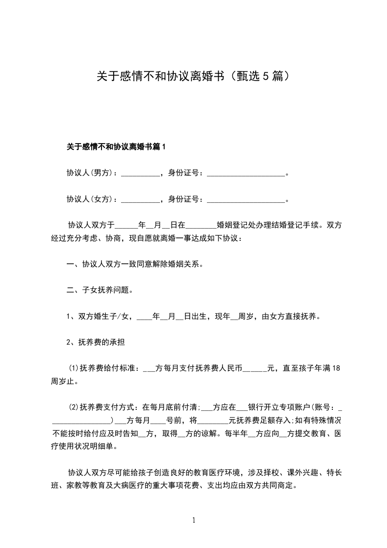 男方与女方于______年____月相识,并于______年____月____日在_________民政局登记结婚,婚后于______年____月____日生育儿子/女儿,名_________。因____________________________致使夫妻双方感情破裂,且已无任何和好可能,现经双方自愿协商达成一致意见,订立离婚协议如下: