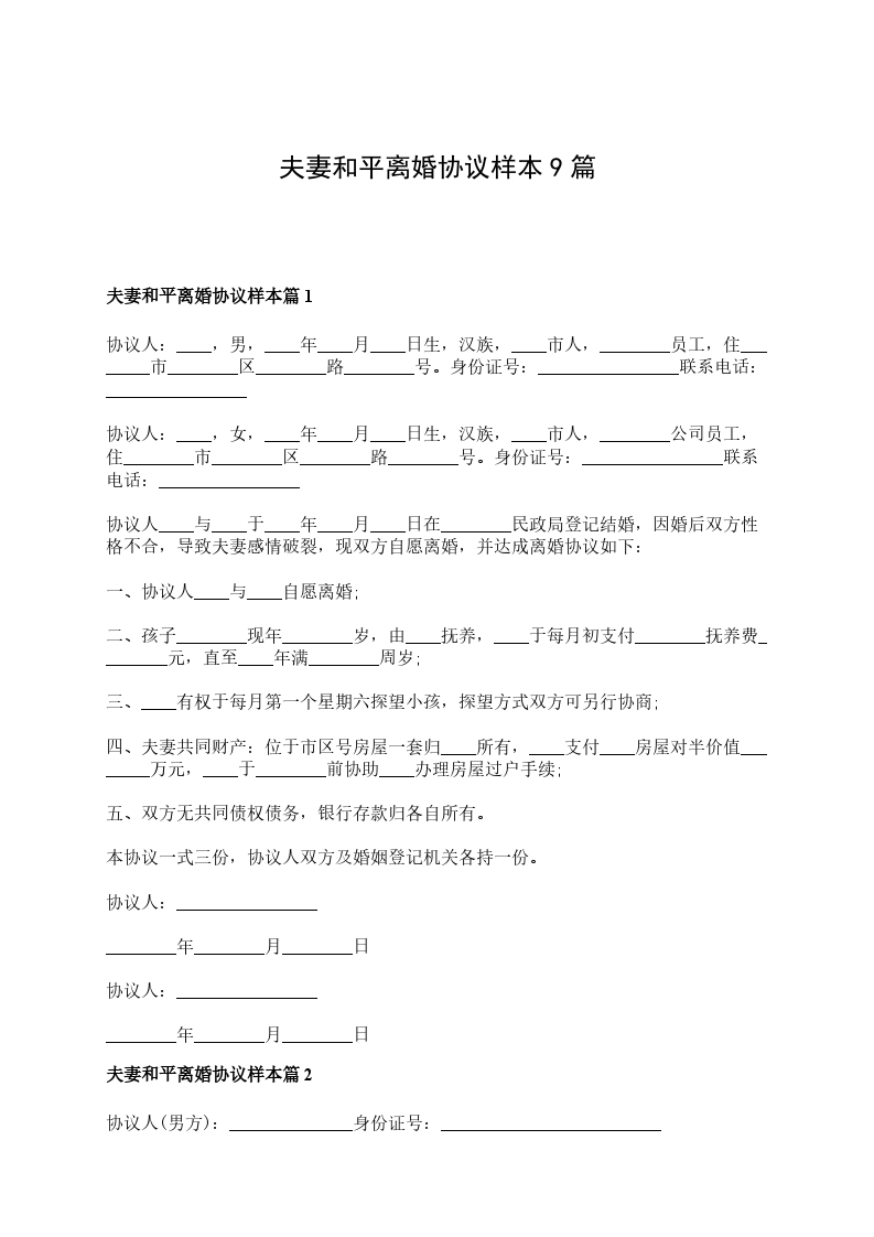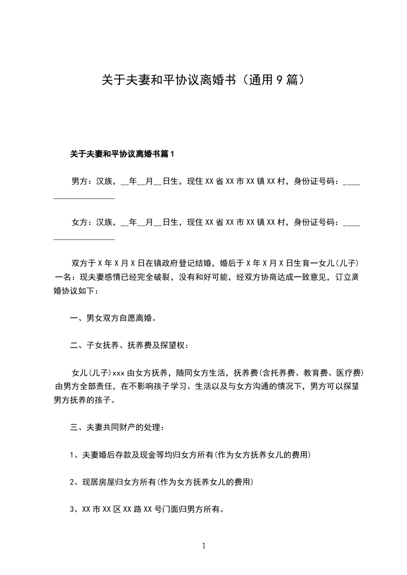 新夫妻和平离婚协议书如何写篇9