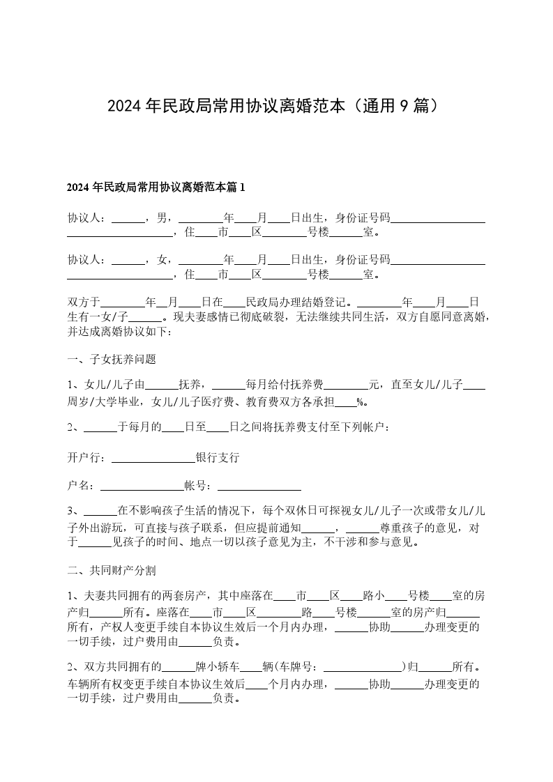 十、本协议一式_____份,双方各执_____份,民政局存档_____份。