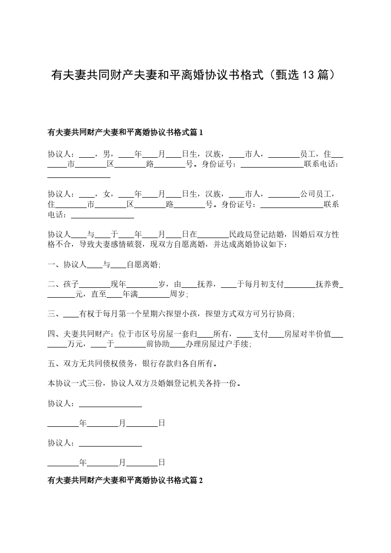有房产夫妻和平离婚协议样本篇13