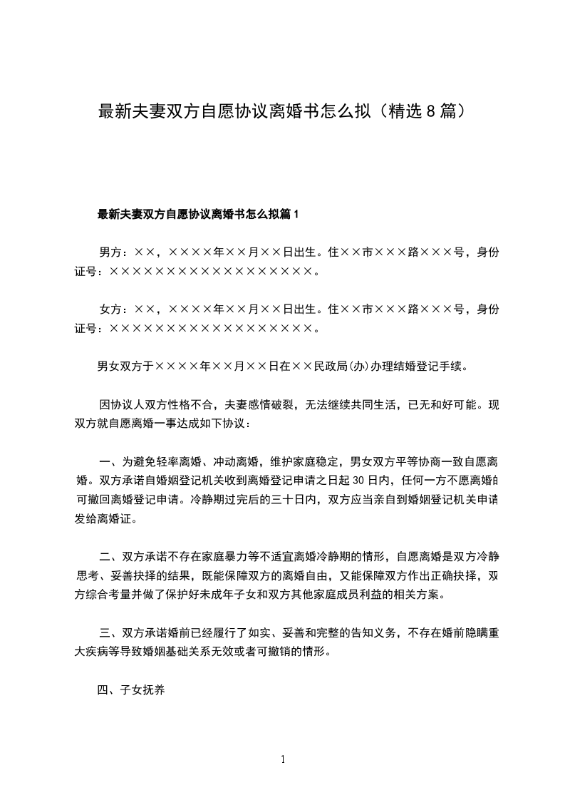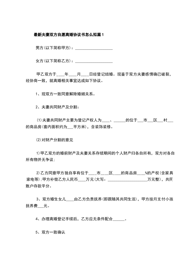 最新夫妻双方自愿离婚协议书怎么拟篇2