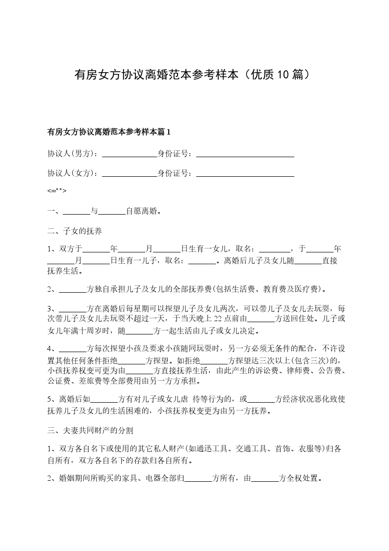 1、______地的1幢住房属双方共同财产,该房屋所有权证编号为__________________,该房屋归女方所有;