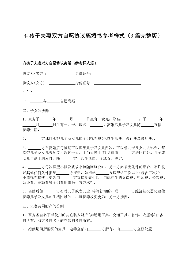 有孩子夫妻双方自愿离婚协议怎么写篇3